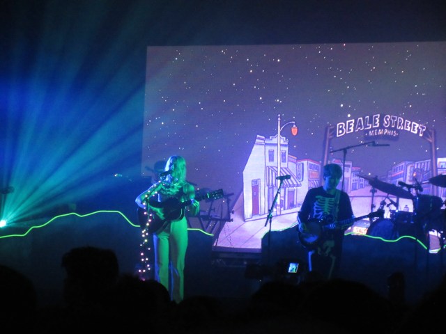 Jon and I then took a punt on an Aussie band called Lime Cordiale, who were playing on the Sunrise. As soon as they came on, with their bright 70s-style suits, Bee Gees/Monkees hair cuts and synchronised guitar moves, you knew they were going to be fun. Musically, they run through most of the classic pop styles. They have a nice interaction going between themselves and with the crowd. There were some humorous intros, and a rather weird German spoof, which was like British comedy circa 1980. The bassist also played trombone, which went down well with the crowd, a fair few of whom were Aussies. It was great entertainment; and I wasn’t surprised to hear that they were playing another set at the Trailer Park at midnight.
