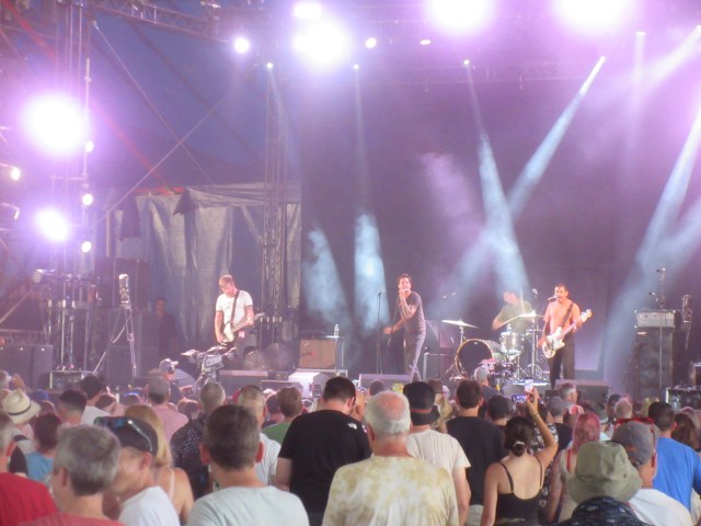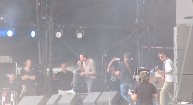 Getting warmer, mid-20s today. Mostly sunny too – perfect festival weather. After last week though, and ten days in sizzling Spain recently, I’d learnt to seek out shade. Standing in the sun at the Obelisk, drinking fizzy Carlsberg was not the most attractive option. Nonetheless, I started the day there, catching the last few songs of Shed Seven’s set. Britpop revival – apparently the band are really popular at the moment, filling sizeable venues across the country. They certainly attracted a big crowd at the Obelisk. Can’t say I was ever a big fan, but I enjoyed hearing the likes of Going for Gold and Getting Better again. They also did a decent cover of Elvis Presley’s Suspicious Minds.