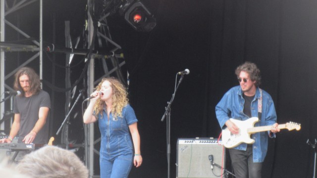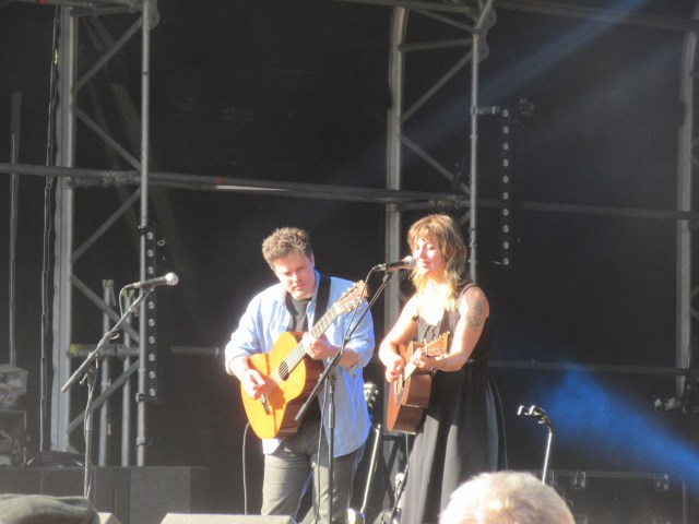 I skipped the literature talks this morning in favour of a lie-in and a leisurely breakfast. Jon and I met up at the Garden stage at midday for folk singer Katherine Priddy. When I first heard her last year I assumed she was Irish, but she is in fact from Birmingham. That first song was a lovely single called True Love Will Find You in the End. I moved on to her album, The Eternal Rocks Beneath, which is a beautiful, wistful collection of soothing folk songs, with a modern beat here and there. Still sounds very Irish to me! On the Garden stage she was accompanied by a guitarist who added a subtle accompaniment to her guitar picking and a few harmonies. Katherine joked that it was perfect music for the start to Sunday, when a lot of people would be nursing hangovers from their Saturday revelries. And yes, it was music you could gently immerse yourself in. There were plenty of people lying on the grass doing just that. I loved the music, and enjoyed her introductions to the songs – a lot of them are inspired by books she has read. I left feeling mellow and ready for some rock’n’roll…