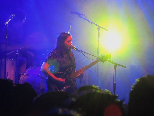 The singer-songwriter theme continued, with Jana Horn (pronounced Jayna). My notes for this one say, “self-confessional minimalism”. Jana, who is from Texas, strummed the bass strings of her electric guitar, and that was pretty much the extent of the music. Her songs were fragile constructions, imbued with a sadness. We watched about 25 minutes of the show, during which she twice told us that she had an unborn twin sibling, who was always with her. The two of them were singing, she said. It’s clearly a deep feeling that has remained with her through her life. That and the complaints about getting lost in the Dorset countryside did leave a pall of gloom over the show though. Jon and I decided to head off to catch the beginning of Ryley Walker on the Garden Stage.