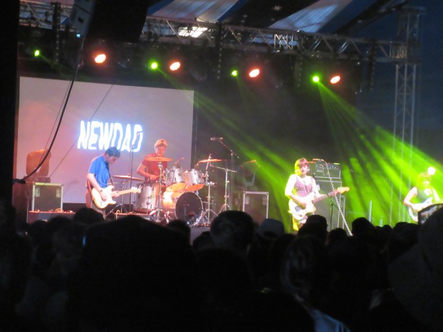 The Chisel finished at six. After a break we convened with the youngsters at the bar near the Woods stage, for Kurt Vile and the Violators. I like Kurt Vile’s music, but tonight we stayed at the bar, talking for the most part. Kurt never really grabbed our attention enough to draw us towards the stage. After that there was a choice: Scalping in the Big Top or Cola in the Tipi. Scalping, from Bristol, are a hardcore electro-metal band, with an infusion of dub, which any self-respecting Bristol band must have. I liked what I’d heard on the EOTR playlist, but Louis was raving about Cola, so I plumped for them. Having said that, I could see some of the visuals in the Big Top as I walked by, and they looked impressive. Afterwards Jon pronounced it one of the best things he’d heard and seen all weekend. Meanwhile Cola at the Tipi played their post-punk indie. The band are Canadian, and formed from a band called Ought. The sound is quite dark and you can hear elements of Velvet Underground and Joy Division in there. Maybe some White Lies too. The basslines were at the forefront and relentless. I thought the band were pretty good, but I suspect some of the subtleties of their music – and the lyrics – were submerged by the live sound. Louis declared them the best band in the world – an accolade that is normally bestowed on fellow Canadians Crack Cloud! Definitely worth seeing, though I think Scalping were more of a spectacle.