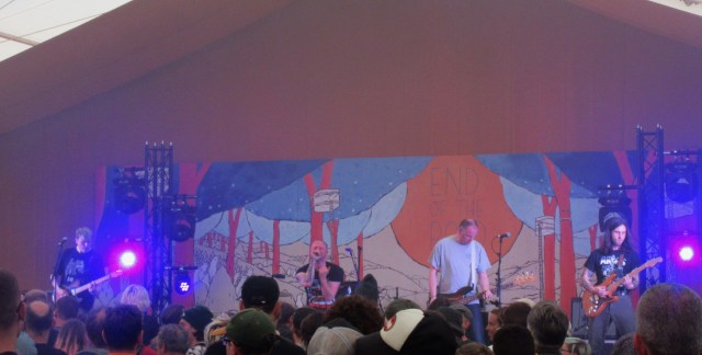 End of the Road has an evening line up in the Tipi tent and on the Woods Stage – the main stage – on a Thursday. We arrived at around 3 o’clock, set things up then sat around chatting for a few hours, accompanied by a few beers. Then it was off to the first show of the festival: either K.O.G (rap with an African flavour) on the Woods stage or Joe and the Shitboys in the Tipi. Jon and I opted for Joe, on the grounds that a bit of lively punk might make a good start to proceedings. It was OK. Lots of crude lyrics and chants that might appeal to a thirteen year old – not many of those at EOTR – and a brevity to the songs that was straight from the Ramones playbook. We stayed for the whole show, which was mercifully short. Onwards and upwards!