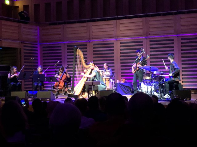 It was a wonderful show. A superb band, with at different times through the two sets, a string section, trumpet, saxophones, percussion, and of course the solid base of electric bass and drums. And then Alina, centre stage. In a sense her harp played the role a piano might play in a band like this normally. But, of course, it had a different feel – more delicate, dreamier. It’s such a beautiful sound, one which I associate through experience with religious services at the school where I was a governor and Irish music, often the two coming together. And of, course, in the pop world, there is Joanna Newsom, whose 2006 album Ys brought something new and distinctive to the genre.