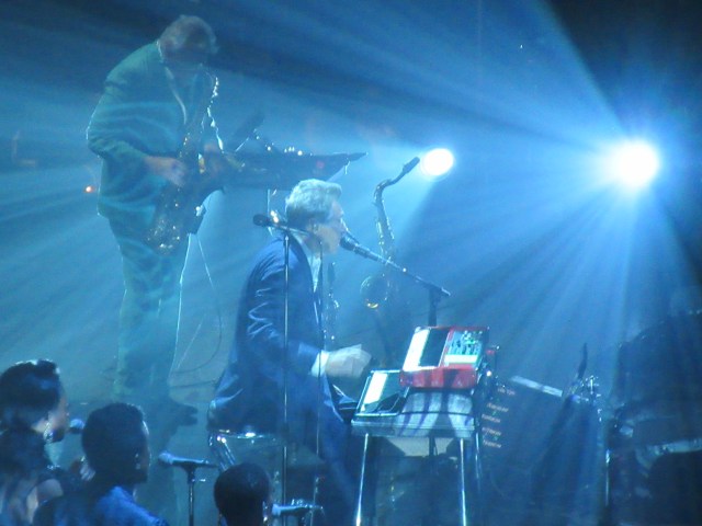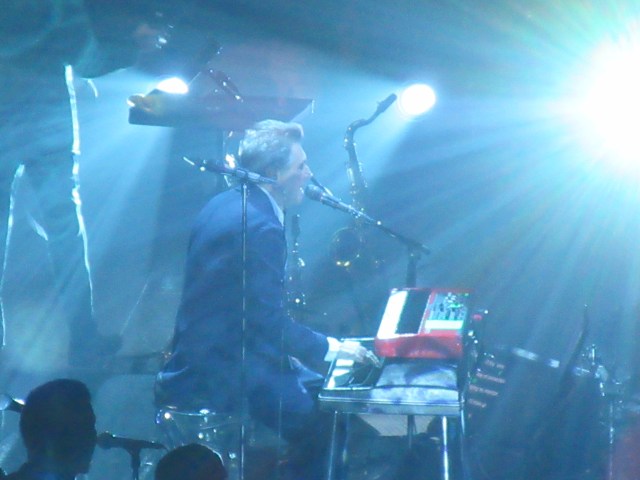 They came racing out of the traps with an urgent rendition of Re-make Re-model, the first track on the first album, and from there you knew it was going to be good. The early part of the show was a real treat for us oldies, with Out of the Blue, The Bogus Man, Ladytron, If There is Something and In Every Dream Home a Heartache featuring in the opening eight songs. So many highs there: that eerie opening to Ladytron, with Andy Mackay on oboe; Phil Manzanera really rocking out in the second half of If There Is Something; and Bryan Ferry imperious as he warbled his way through Dream Home, swathed in green light. Still able to sing about inflatable dolls with a straight face! Dave thought his voice was a bit weak; I didn’t really notice that. I guess I was just too engaged in the whole sound and vision to care.