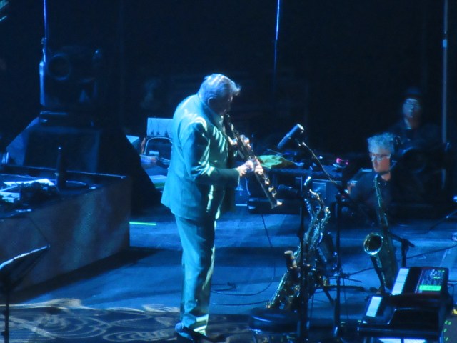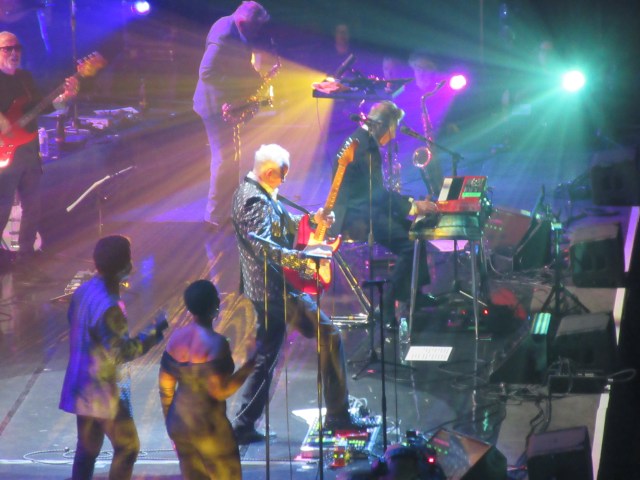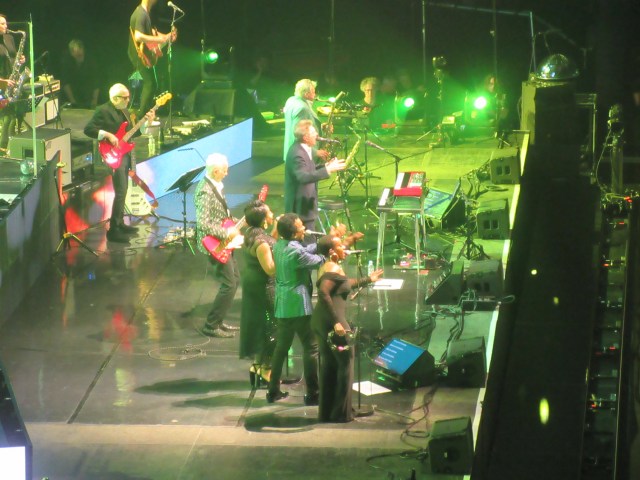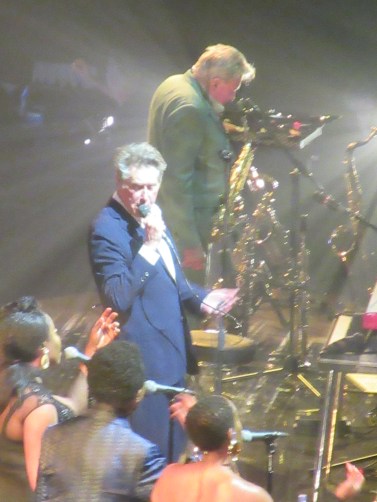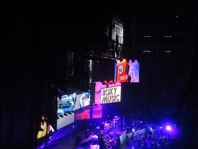And so to the O2 this time around. Anticipation was high – might this be the last time we would see Roxy Music play together? Well, if it was, we’ll have a great night to remember. The band were superb – and by band I mean the whole troupe, which included instrumental back up for all the original members and the three backing singers. The sound was excellent, at least where we were sitting, and the multiple screens added some arresting imagery as well as giving those far back in the arena a chance to see the band close up.