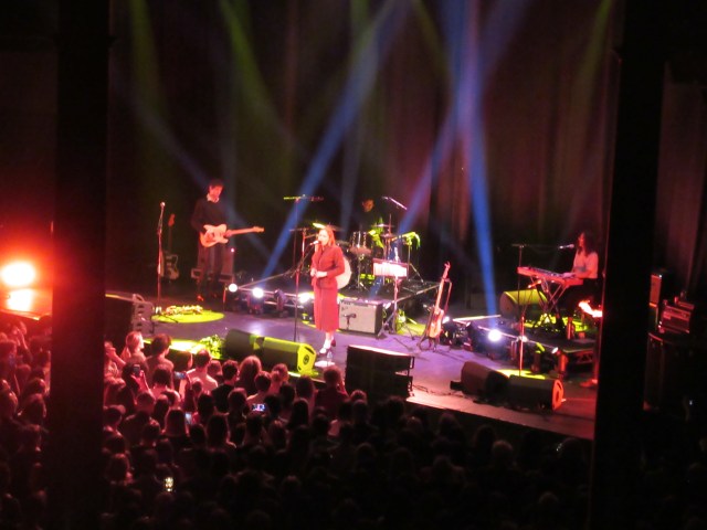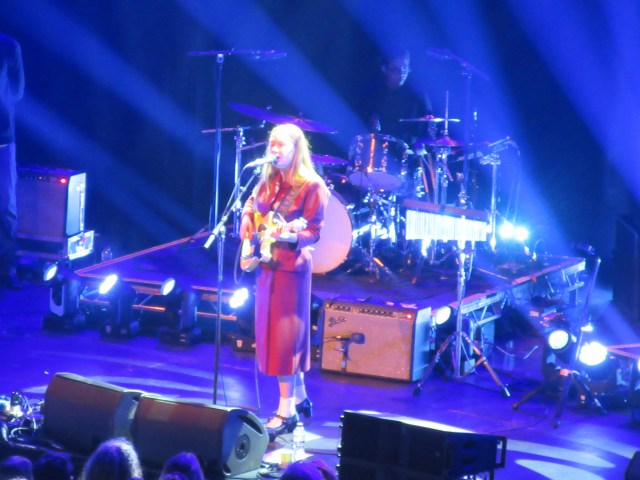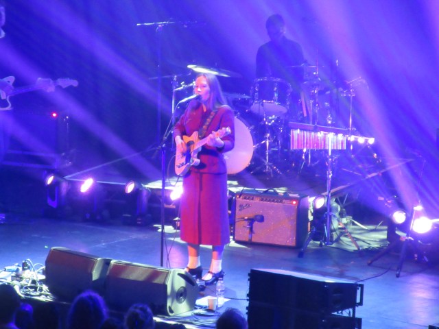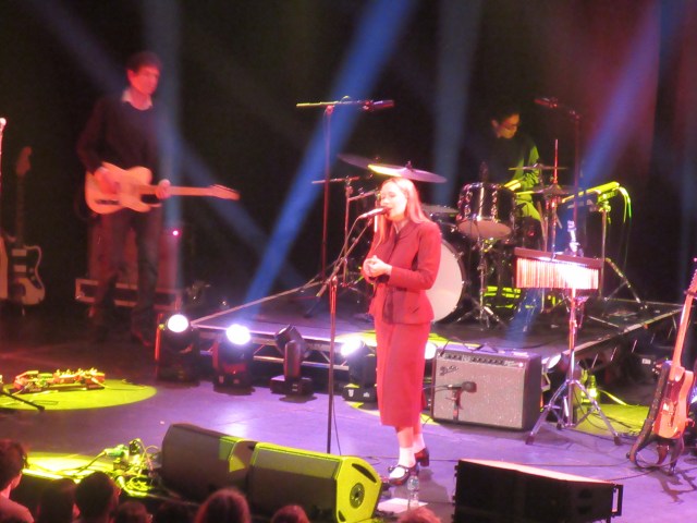 After the opener, the band came on and the emphasis in the first half of the show was on songs from the new album, interspersed with a jaunty Pool Party and Body, the opener to Crushing, and one of Julia’s most intensely personal songs. The band were excellent, including the tall guitarist, whose name I still don’t know, but who has been playing with her for some time. He had his moment in the sun towards the end! I like the new tunes, though I’m still getting to know them. During one, Love, Try Not to Let Go, Kath whispered that the music sounded like Fleetwood Mac; and yes, I get that. A similar sense of melody and pop sensibility to that band during the great Rumours era.