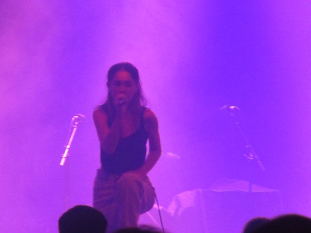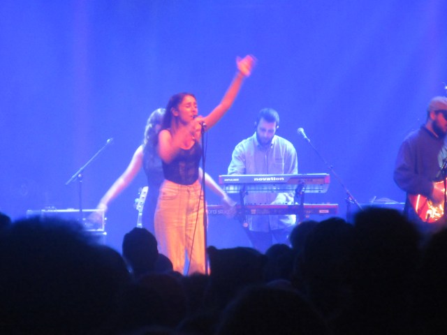 That was the last time we saw any of the artists in the Studio. When we gave it a try midway through a set by Fake Fruit (which sounded quite punky) there was a big queue of people waiting to get in. I would have liked to see Léa Sen, a French singer who has worked with Joy Orbison amongst others, as well as releasing her own material – Hyasynth is a good song – and doing a lovely cover of Bowie’s Golden Years for a tribute compilation called Modern Love which came out in 2021. No matter, there was an enjoyable run of artists in the main hall. We caught half of Big Joanie’s show – some good rocking there. I liked Samia a lot – classic melodic American pop/rock with some country-tinged melodies and some lively dancing from Samia herself. For some reason I had it in my head that she was a jazzy soul singer; later I realised I had listened to her 2020 album The Baby when it came out, having heard some tracks on 6 Music.