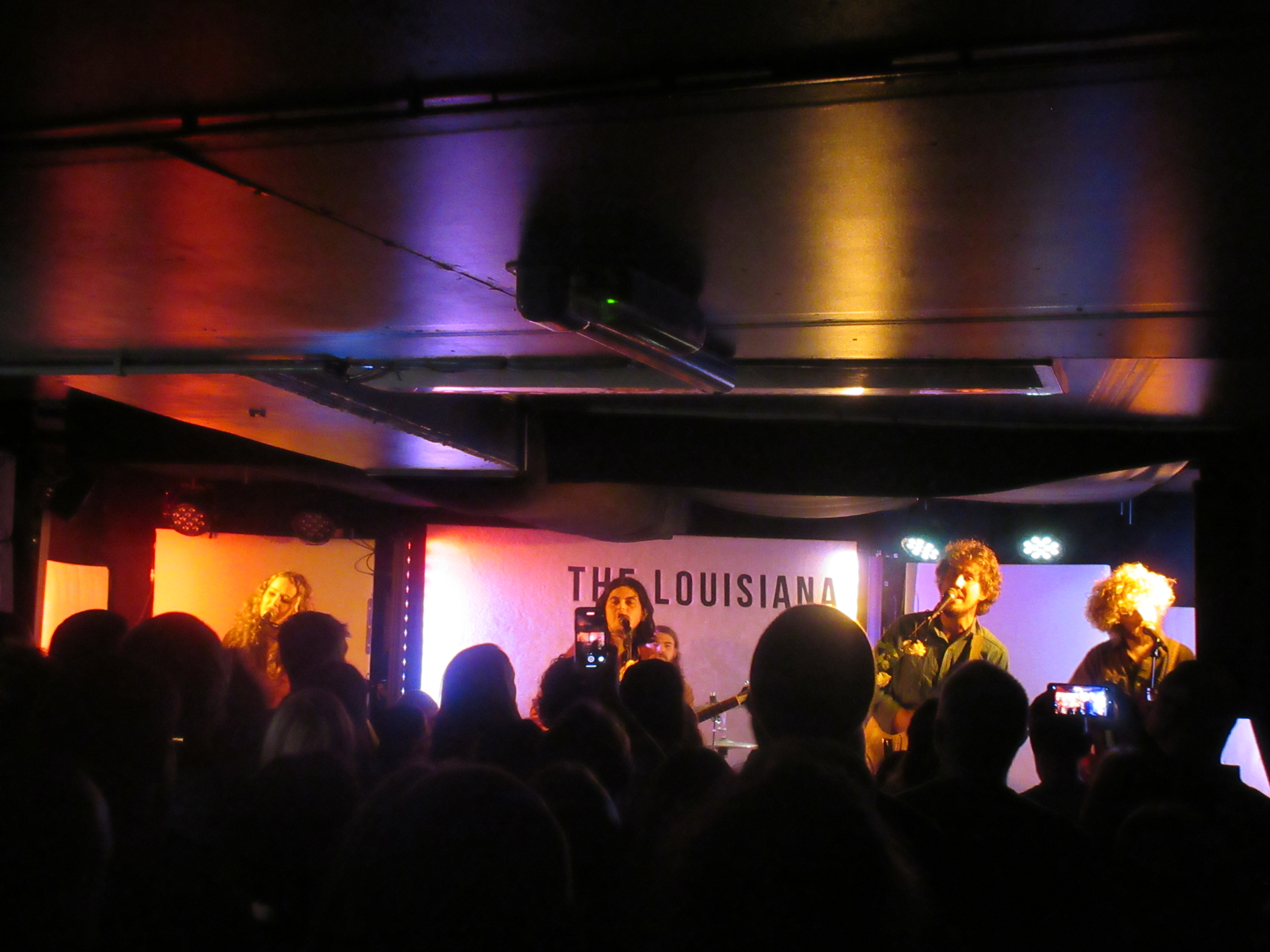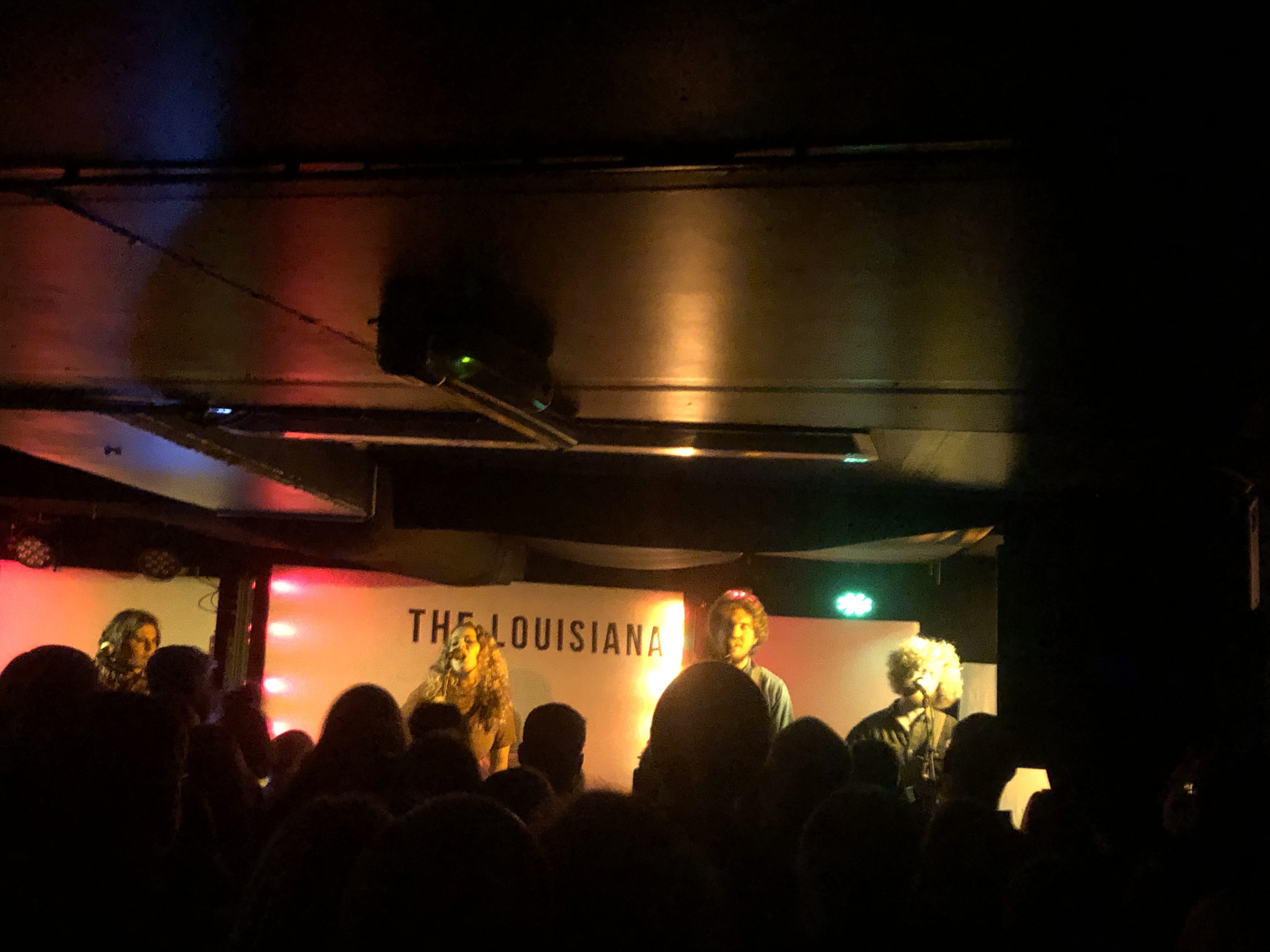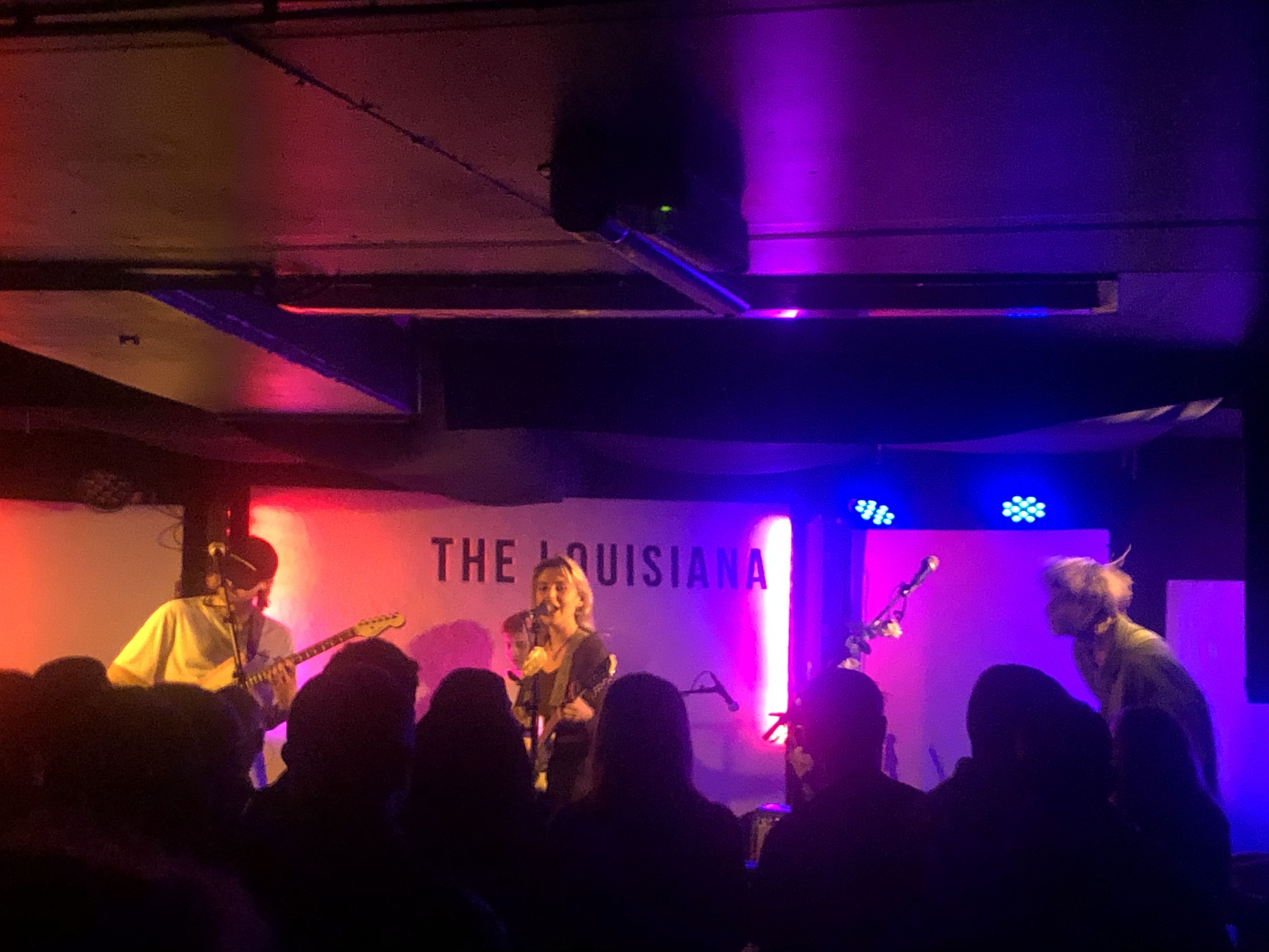 So when a UK tour was announced I had to see them again. Only problem was, I already had a gig on the date of their London show. No matter, that was another opportunity to pop down to Bristol. Kath came along with me – she’s a fan of Bristol too. They were playing the Louisiana, like Indigo Sparke just recently. This time the venue was sold out. It’s not massive – 140 in the space above the pub – but there’s a good atmosphere. We caught about half of the support band Hunny Buzz. Fronted by the charismatic Lydia Read, they played a lively pop-punk that reminded me of a band like the Beths, even my old favourites Honeyblood. They set things up nicely for the main act.