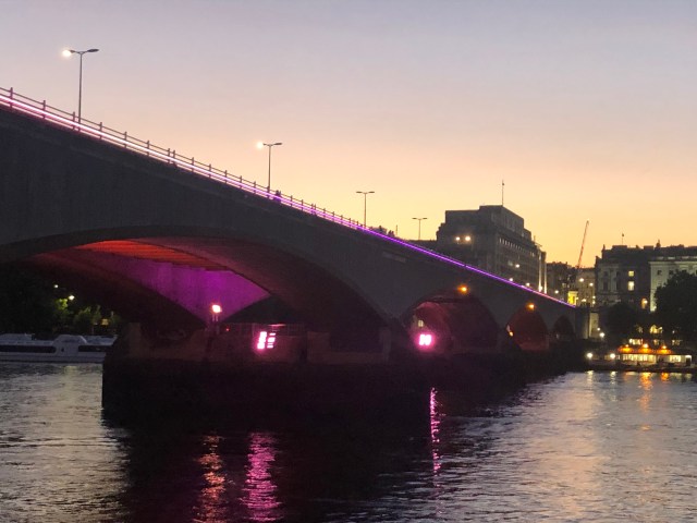 The first Waterloo Bridge was designed by John Rennie, and opened in 1817 as a toll bridge. It was made from granite. Like so many of London’s bridges, it suffered from erosion and what turned out to be unsuitable design – see previous blogs! It was replaced in 1942, but not fully opened until 1945. It is the only London bridge to be damaged by bombing during the war, which is surprising. It’s a pretty functional and unexciting construction, but these days it’s nicely lit up in the evenings, with a streak of purple light. And who can forget the Kinks’ Waterloo Sunset? Monet, amongst others, liked to paint the scenes here too. A different bridge, a different world; but there is something that draws you here.