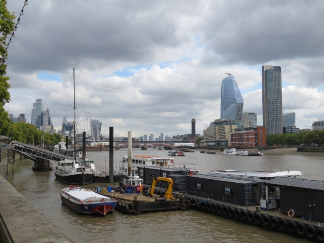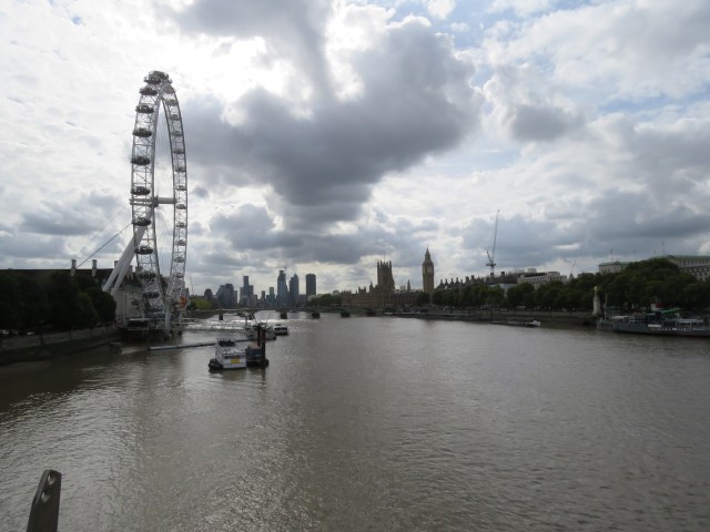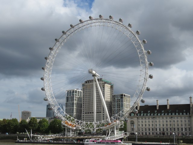 We’ll start on the south side, because that soon brings us to one of London’s best known landmarks these days, the London Eye. It was erected in 1999 to mark the Millennium and opened to the public in 2000. At the time it was the tallest Ferris wheel in the world, though it has been overtaken since. It is the UK’s biggest tourist attraction, which is evident when you walk along this part of the river! It’s not the only attraction in the vicinity – the old County Hall building, once the home of London’s local government, now houses the Sea Life Aquarium, Shrek’s Adventure and the London Dungeon, as well as a hotel and various restaurants. A place to pass through quickly, unless you are visiting one of these attractions. To be fair, the London Eye is not only a brilliant addition to the skyline, but is absolutely worth having a trip on. The views of London are stunning and there is something remarkable about reaching the top of the cycle, suspended in mid-air, feeling like you aren’t moving at all.