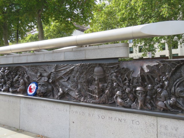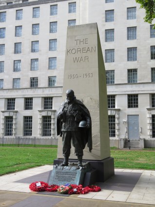 Just along the Embankment, past the Millennium pier, are the Battle of Britain monument  and the Royal Air Force memorial, unveiled in 2005 and 1923 respectively. Across the road, in the Whitehall extension of Victoria Embankment Gardens are a number of other war memorials, commemorating the Chindit special forces who served in Burma (now Myanmar), the Korean War and more recently those who served in Iraq and Afghanistan. Fittingly, the Ministry of Defence building looms over them.