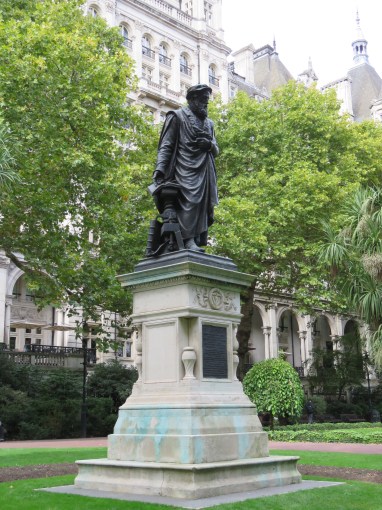 In the next part of the gardens are a rather odd selection of statues. First there is William Tyndale, a leading figure in the Protestant Reformation in the 16th century. He translated the Bible into English and opposed Henry VIII’s annulment of his marriage to Catherine of Aragon. He was living in exile when he was seized in Antwerp in 1535 and imprisoned near Brussels before meeting a grisly death at the stake in 1836. Clearly a major historical figure, unlike the other two: Henry Bartle Frere, a 19th century colonial administrator, and Sir James Outram, a general in India in the same century. I’m surprised those two haven’t become part of the statue culture war yet. Still, there’s a river nearby if they need one…