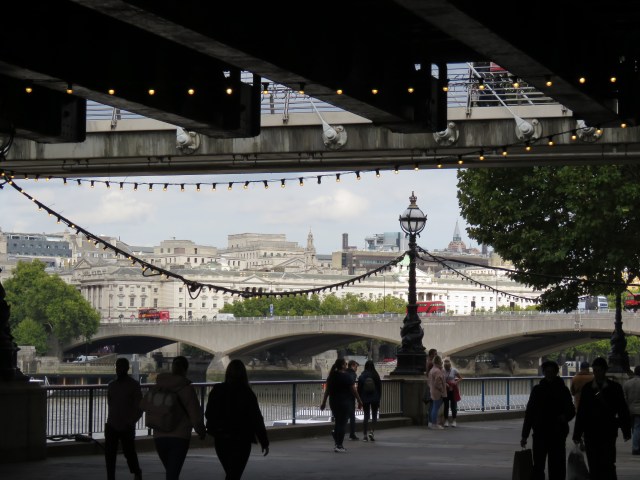 Blackfriars Bridge first opened in 1769, having taken nine years to build. The designer was Robert Mylne, and the style was Italianate. It was originally called William Pitt Bridge, after the Prime Minister (the Elder) but that didn’t catch on, and it took its permanent name from the Dominican monastery which once stood nearby. Of course the original didn’t stand the test of time, and it was rebuilt in the 19th century, opening in 1869. A tram line was on the bridge from 1909 to 1952. It’s a bridge I often find myself crossing, coming out of the tube station, heading for the Tate Modern, a little way downstream on the south side. Like all the bridges in this part of London, there are great views all around.