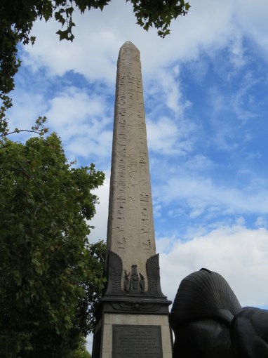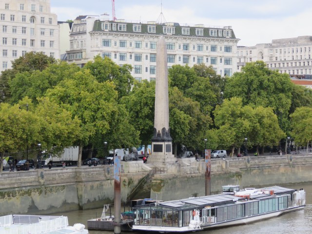 On the river bank is another monument, Cleopatra’s Needle, with accompanying sphinxes. The needle dates back to 1450 BC and was moved to Alexandria in 12 BC by Queen Cleopatra, to form part of a temple honouring Mark Antony. It was gifted to the British by the ruler of Egypt and Sudan, Muhammad Ali, in 1819, as thanks for British victories against the French in the Battles of the Nile (1798) and Alexandria (1801). The obelisk didn’t arrive in London until 1877 and almost sank in the Bay of Biscay on its journey over. It has a twin, which is in Central Park, New York. It’s a bizarre sight on the banks of the Thames, with the cars roaring by. Arguably, it would better back in Alexandria.