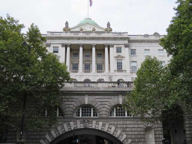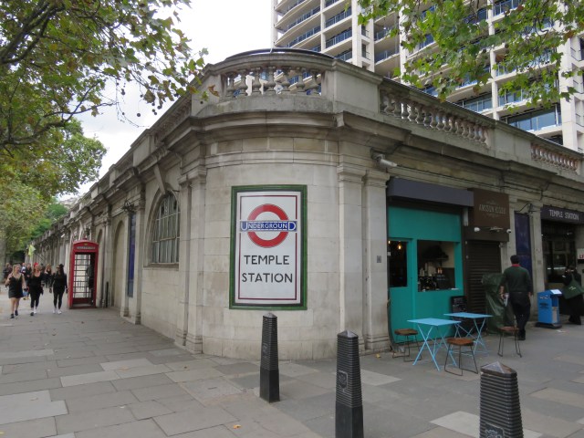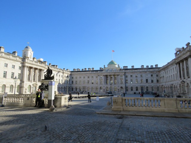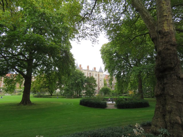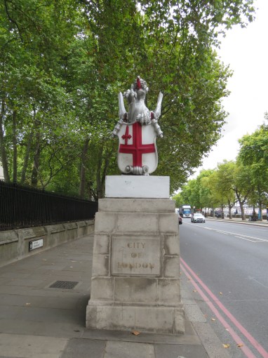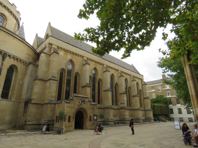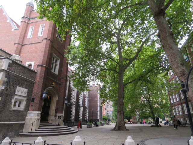 Soon we come to Temple tube station, then a rather odd monument signifying the boundary of the City of London, and then the Temple itself. This is the home of London’s legal profession, in particular the barristers’ chambers. It’s a tranquil spot in the middle of bustling London, with Fleet Street at its northern boundary, and the Royal Courts of Justice just down the road at the end of the Strand. The area was the home of the Knights Templar in the 12th century, but by the 14th royalty had their hands on it, and the lawyers moved in. Temple Church dates back to the 12th century. The area remains largely accessible to the public, so you can wander around, though most of the buildings are private. It always seems to me like a larger version of an Oxbridge college. There’s a pattern here: you go to a top private school, then Oxbridge, and then are “called” to the Bar, take “Silk” when you become distinguished enough, and spend much of your time in Temple and the Royal Courts of Justice. Seamless. The architecture barely changes.