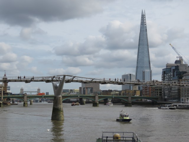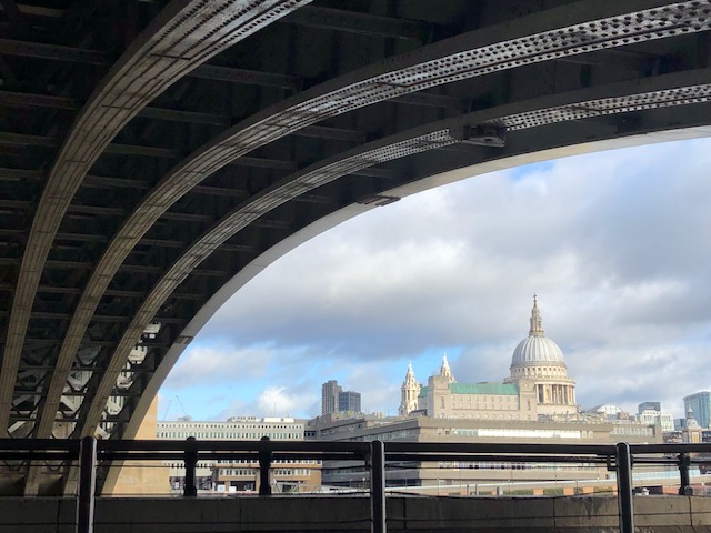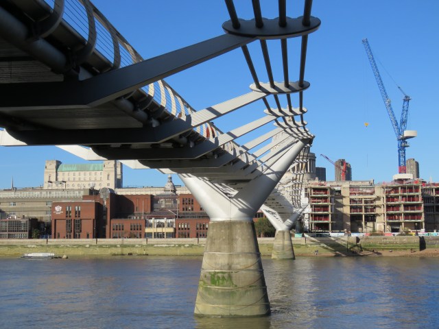 The Millennium footbridge is another amazing construction, though it had a wobbly start – literally. Designed by Norman Foster, it opened in June 2000, but was soon closed, as it shook when large numbers of people walked across it. Apparently we have a tendency to walk in lockstep with others and this caused the swaying. So it was the pedestrians’ fault! The bridge had to be redesigned before it was reopened in 2002. No-one calls it the wobbly bridge anymore – they are too busy marvelling at the views, which include the straight line up to St Paul’s.
