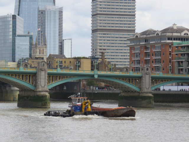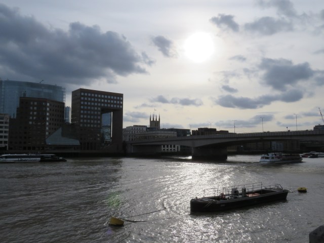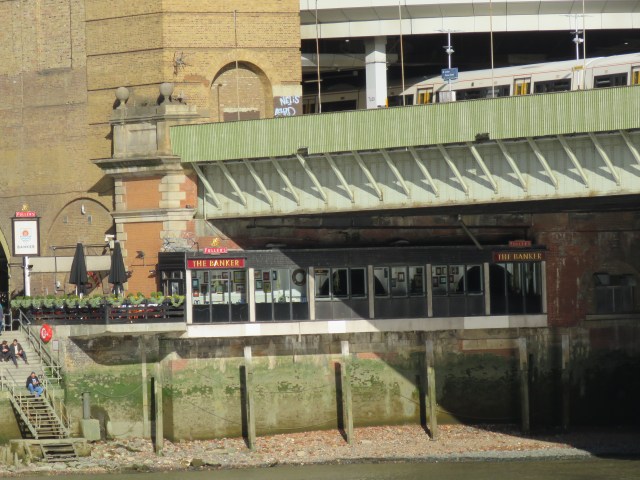 We pass Southwark Bridge – the current version opened in 1921 – before taking a diversion from the riverbank which leads towards Borough Market and Southwark Cathedral. On the north side incidentally, you can take steps down to the river and along an alleyway to the Banker pub, which serves Fullers. Part of the pub is directly under Southwark railway bridge, and if you get a window seat you can watch the boats go by.