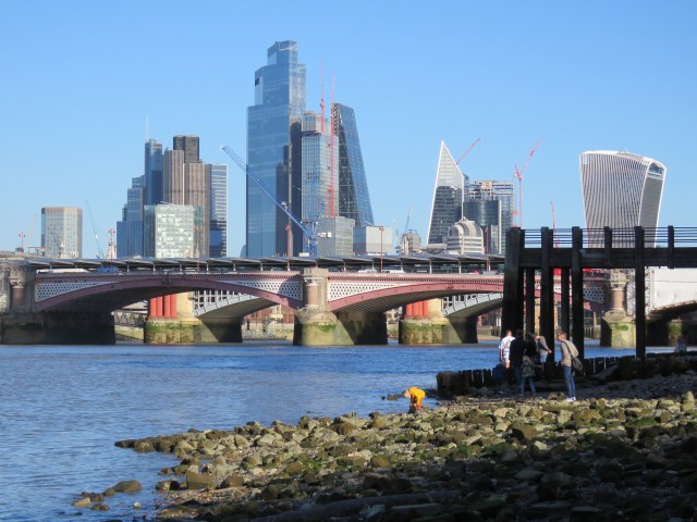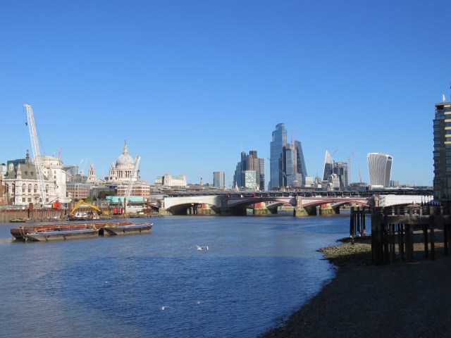 I love the walk beyond the National Theatre up to Blackfriars Bridge. On this side of the river, the gleaming tower that is One Blackfriars is an impressive sight, with the Oxo Tower in the foreground. But the views that take the prize are those of St Paul’s Cathedral and the City, coming ever closer. At low tide there’s a bit of beach that you can walk down to, and get even better views. There’s something exhilarating about being on a beach, with the Thames running by, surrounded by all these spectacular views.
