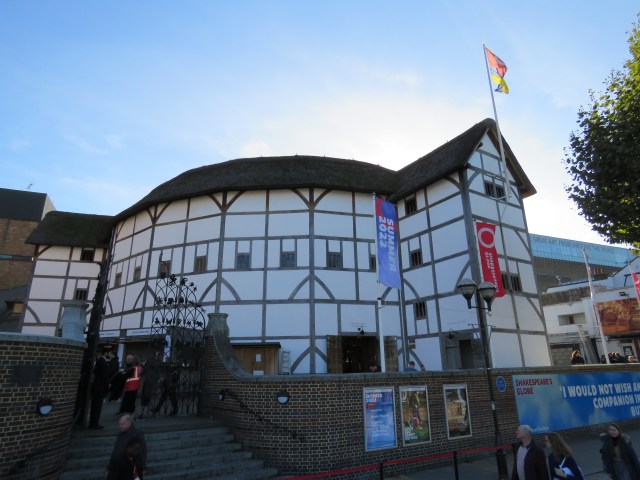 Next to the Tate, we come to the Globe Theatre, once the home of William Shakespeare’s troupe, the Lord Chamberlain’s Men. The original Globe was built in 1599, partly using timber from another theatre in Shoreditch – without the owner’s agreement! It burnt down in 1613 and was rebuilt the following year. It survived until 1642, when it was closed down with the outbreak of the English Civil War. It never re-opened, and tenements were built on the site. The current theatre, which was modelled on the original, was opened in 1997 and has flown the flag for Shakespeare ever since.