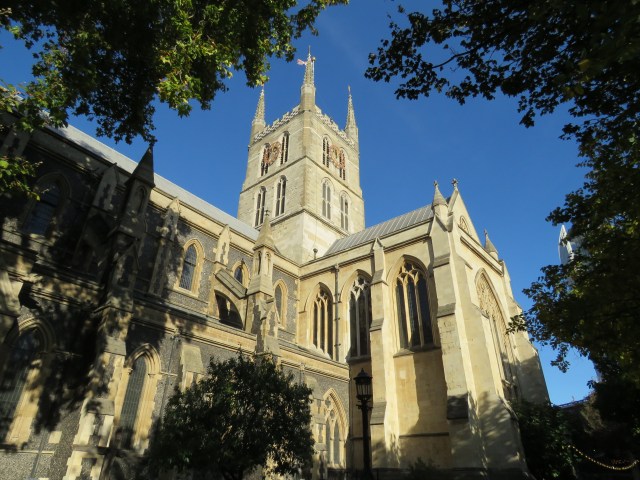 Southwark Cathedral is nestled between Borough Market and London Bridge. Between 1106 and 1538 it was an Augustinian priory. With the dissolution of the monasteries under our old friend Henry VIII it became a parish church, St Saviours. For centuries it was, strangely, part of the diocese of Winchester, then from 1877, Rochester. It only became a cathedral in 1905, with the creation of the diocese of Southwark. It retains a lot of its 13-15th Gothic origins, though the nave was rebuilt in the 19th century. The gardens around it are a peaceful place to take a breather from the bustle all around.