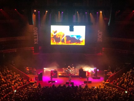 The day after Gwenifer Raymond – talk about contrasts! Killing Joke were – are – a post punk/goth band whose heyday was in the early 80s. They passed me by at the time, but Dave and Tony were keen to go along. Jon and I were tempted by the pre-concert meal at Polish restaurant Ognisko as much as the music. But it was good – very loud, relentlessly rocking, verging on metal. There was a dramatic video backdrop – all fire, wars, marching. A bit obvious, but a good match for the music. They played most of their key songs – Requiem and Follow the Leaders stood out for me, probably because I’d liked them when I mugged up before the show. Singer Jaz Coleman looked a bit like Ozzy Osbourne from our seats high up in the Raising Circle. Plenty of aging goths were present in the audience. A fun, if ear-bashing evening.