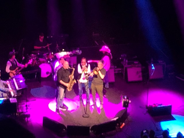 I’m not playing for three f*****g hours, Southside quipped as he arrived on stage; but we were treated to an hour and three-quarters of high-spirited R&B and soul, powered along by the ever-excellent Miami Horns. Most of the old favourites were featured – the main exception being Hearts of Stone itself. Love on the Wrong Side of Town, This Time Baby’s Gone for Good, Talk to Me, Got to be a Better Way Home, I Don’t Want to Go Home. Classics all. As for The Fever – probably the highlight of the whole show. Such a stirring tune, and sung with panache by Southside. He was in good voice all night – giving plenty of limelight to the horns, which allowed him to pace himself. I was reminded what a great soul singer he is in some of the covers they played, notably Don’t Walk Away Renee and a beautiful rendition in the encore of Sam Cooke’s A Change is Gonna Come. The three song encore was terrific, starting with Bruce’s Sherry Darling (off The River) and finishing with the only song it can really be: another Sam Cooke song and a Southside perennial, Having a Party.