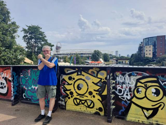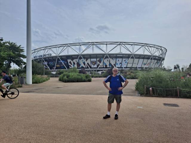 We then come to the East India docks. Nearby is a derelict building that was once the Thames Ironworks. Originating in 1837, its main business was shipbuilding. But most important to me, in 1895 Thames Ironworks football club was formed. In time this became West Ham, my team. Hence the nickname, the Irons.