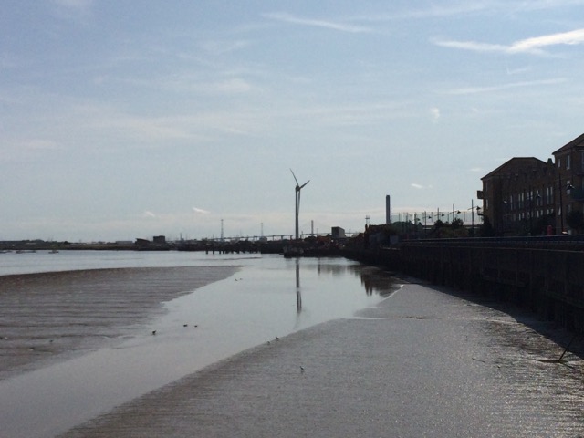 Soon after we approach Erith. The town is rather nondescript, but the river, now very wide, is a thing of majesty. When the tide is out it is all mudflats. And in the distance is Dartford Bridge. We will come back to that in the final blog of this series.