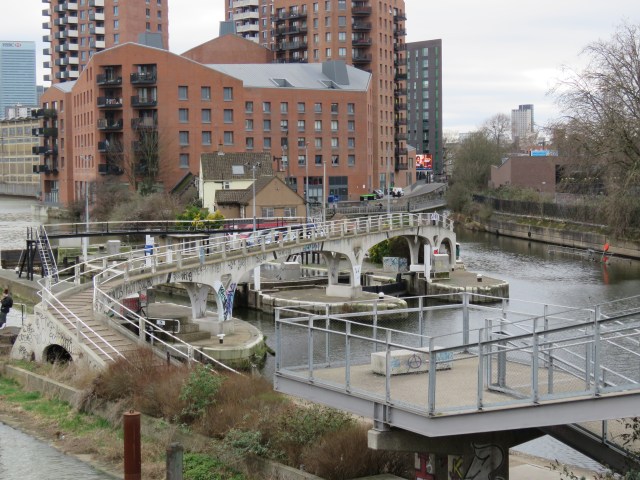 The photos in this section were taken on a walk that started at Three Mills Island on the River Lea and led down to where the Lea meets the Thames. East India docks are nearby. Since then I’ve done the walk a few times with friends and family but in the opposite direction. It’s a fascinating stroll. Take the Docklands Light Railway (DLR) from Bank to East India – with great views of the City and Canary Wharf – walk down to the Thames, along to the docks and then to Trinity Buoy Wharf, where the Lea and Thames meet. Then there’s an interesting walk up the River Lea to Hackney Wick. The whole thing is about six miles and when you arrive at Hackney Wick there are some very good craft beer bars near the river, including the Crate Brewery and the Howling Hops. The photos below include a diversion up the Lea to Three Mills. It has become one of my favourite London walks.