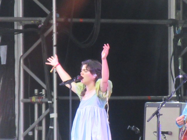 Final show of the night was Angel Olsen, headlining the Garden stage. I’ve always enjoyed her music, both the heart-rending ballads and the more trenchant rockers. Recently she’s delved more into country too. All were present tonight, in something of a greatest hits show. She played with a real confidence that comes from success, and was relaxed and humorous in between songs. It was noticeable how much the women in the audience were relating to it – it’s in the lyrics, I think. I was delighted that she played Sister, which is my favourite song of hers, and features a couple of searing Neil Young-style guitar solos. Shut Up Kiss Me packed a punch, and All the Good Times oozed country heartbreak. And it still sounds a bit like Good Year for the Roses! A very satisfying end to the first full day.