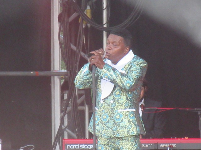 After a break, Jon and I headed up to the main stage to see soul veteran Lee Fields. He is an absolutely classic old school soul man, Resplendent in shiny green suit, he threw a few James Brown shapes and sounded like a cross between Al Green and, especially on the ballads, Otis Redding. The energy he brought to the stage, aged 72, was impressive. His old school-ness grated a little when he talked about the ladies, and he elicited a groan when he asked one man at the front whether the woman next to him belonged to him. He meant well, of course and he had the crowd eating out of his hand for the most part. His band were super-slick, his voice soulful to the nth degree. A perfect sound for a gorgeous late summer’s day.