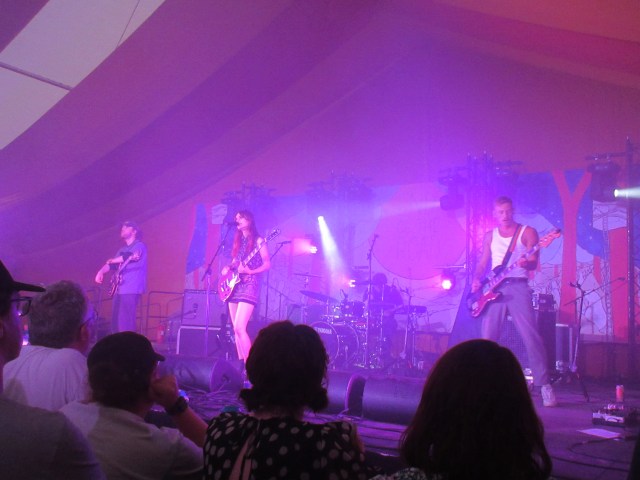 Fortunately power was restored in time for Gretel Hänlyn to have time to tune up before her show, and it stayed on. Gretel said that the generator had been in a pool of water. Presumably some kind of leak. So that was a relief. The band started up the riff for Apple Juice and they proceeded to play the best set I have seen them do yet. Latitude was good, but this was even better. It no doubt helped that I was quite close to the front, but they are exuding a confidence these days that comes from the hard graft of live shows. The crowd was a good size and Gretel seemed very pleased and energised by that. The melodies were strong and clear; the riffs packed a real punch. I loved it all, but particularly enjoyed Wiggy and Drive amongst the uptempo songs and the two ballads, Connie – which Gretel declared her favourite song – and In the Water. As is now customary, the show ended on a high with Today (can’t help but cry), which belies its title. Great stuff.