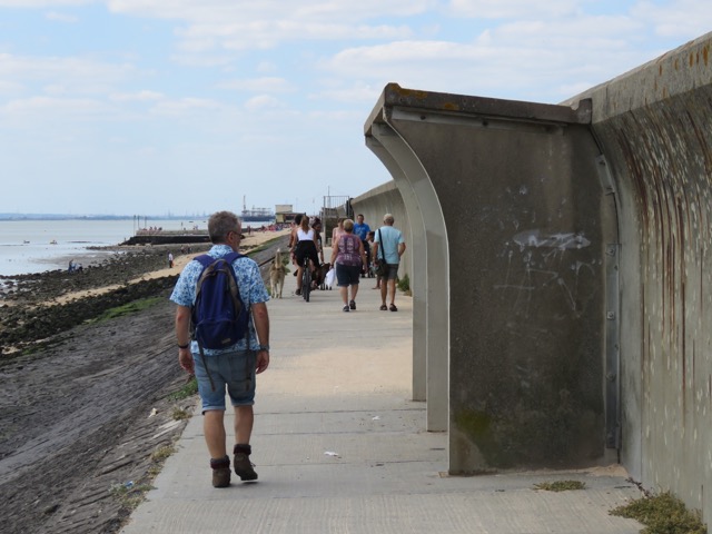 Canvey Island is in Essex, a few miles west of Leigh-on-Sea. It’s barely an island, separated from the mainland by often narrow creeks. The nearest station is Benfleet; trains run from Liverpool Street. My sole visit, with Kath, Jon and Maggie, was in August 2016. We walked a full circuit of the island, which was around 16 miles. Travelling clockwise, the walk down to the beach and entertainments on the south coast was interesting; the latter half, often ploughing through narrow tracks between bushes, was quite arduous, especially in the August heat.