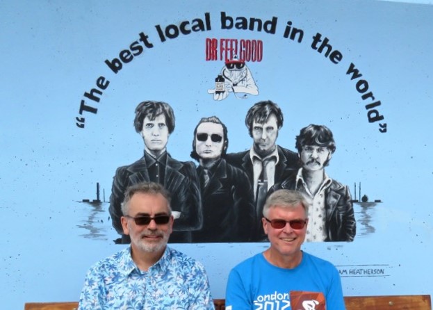 As I mentioned at the beginning of the blog, Jon and I were keen to visit to pay homage to Dr Feelgood, who were from Canvey island, and see the place where they took the photos for the cover of their classic album Down by the Jetty, released in 1975. That album revolutionised my and my metal-loving friends’ musical taste – and the way we wanted to look. Short sharp songs, scruffy jackets and thin ties became the order of the day. That set us up for the advent of punk a year later. The Feelgoods truly were pioneers, guitarist Wilko the master of the staccato riff. We’re not quite sure we managed to locate the exact location of those iconic photos, but we did have our picture taken in front of a mural on the sea wall down by the beach.