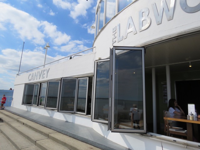 From the Victorian era onwards, Canvey became popular as a holiday resort and became more developed. A casino was built in the 1930s and other entertainments thereafter. The Labworth beach café has had its up and downs, but has been restored and is a splendid example of art deco architecture. The holiday industry suffered from competition from cheap package holidays from the 80s onwards, but there are still ranks of mobile homes juxtaposed with gas and petrochemical storage facilities!