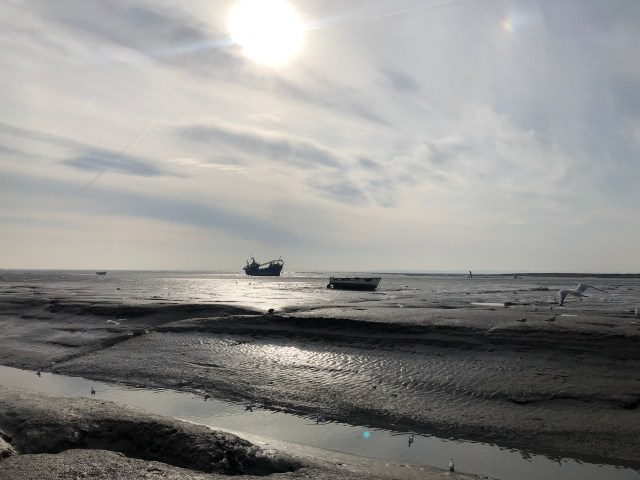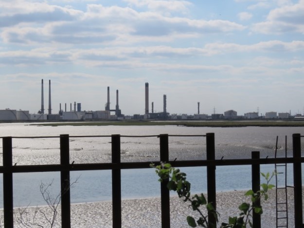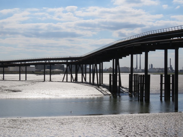 I popped out during the meal to take a few photos of the pier from the beach, as well as the one of Billy’s. And across the estuary you could see the refineries on the Isle of Grain. I went there once in the early 80s when I was at BP, as part of a course learning about other parts of the business than our own (I was an economist). Fascinating place – the scale and complexity. I also remember there were a few rather dirty sheep munching away on the surrounding grass. Apparently they were employed for the task as they couldn’t risk mowers causing sparks and causing an explosion.