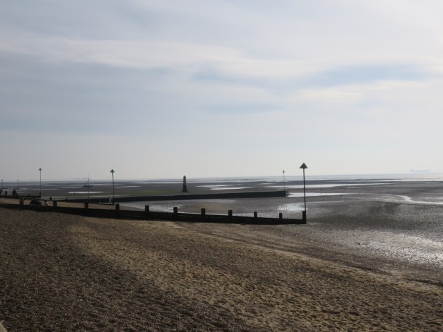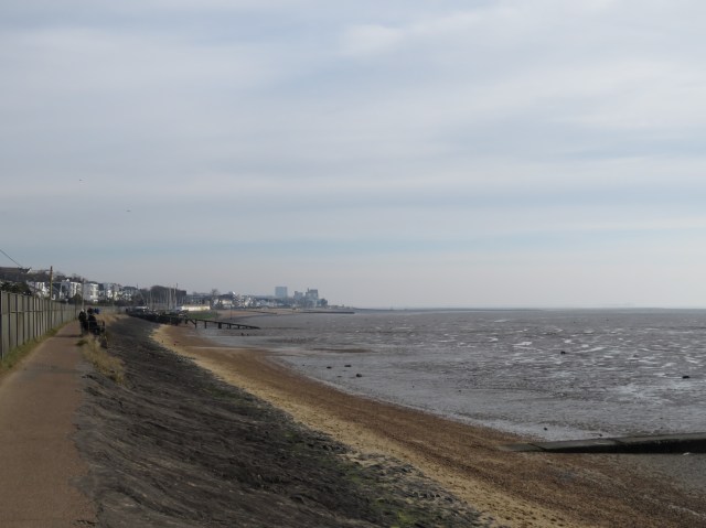 Just before Westcliff, at Chalkwell, there is an obelisk-like pillar out to sea. Clearly visible at low tide of course. Known as the Crowstone, until 1857 it marked the seaward limit of the jurisdiction of the City of London over the Thames. The jurisdiction now lies with the Port of London Authority, though its remit extends considerably further into the North Sea. Meanwhile, I will happily take the Crowstone as the point where the Thames meets the North Sea.
