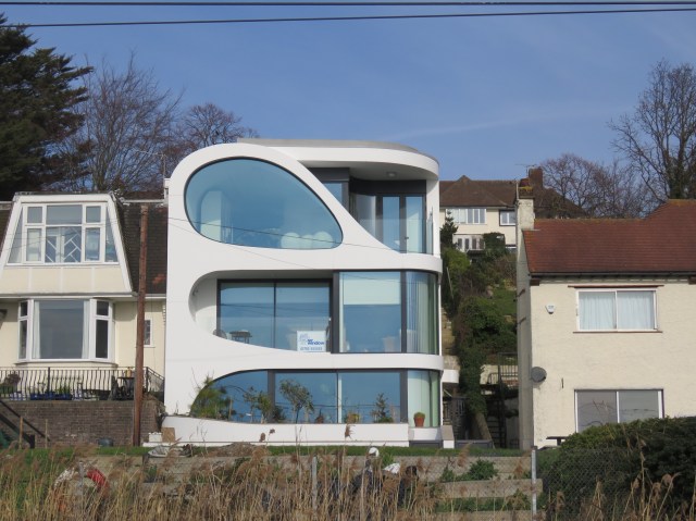 The walk into central Southend covered around three miles, and ran alongside the railway. On the other side of the railway there were some smart and interesting houses, some quite modern in design (photo). We passed areas called Westcliff and Clifftown, where it looks like there is a lot of money. We speculated that it might be a combination of retirees and wealthy traders and bankers working in the City of London – a fair number of them hail from Essex. I guess we all expected Southend to look a little run down, another faded seaside town. But not at all, at least by the seafront. It looked like there had been a lot of recent development.