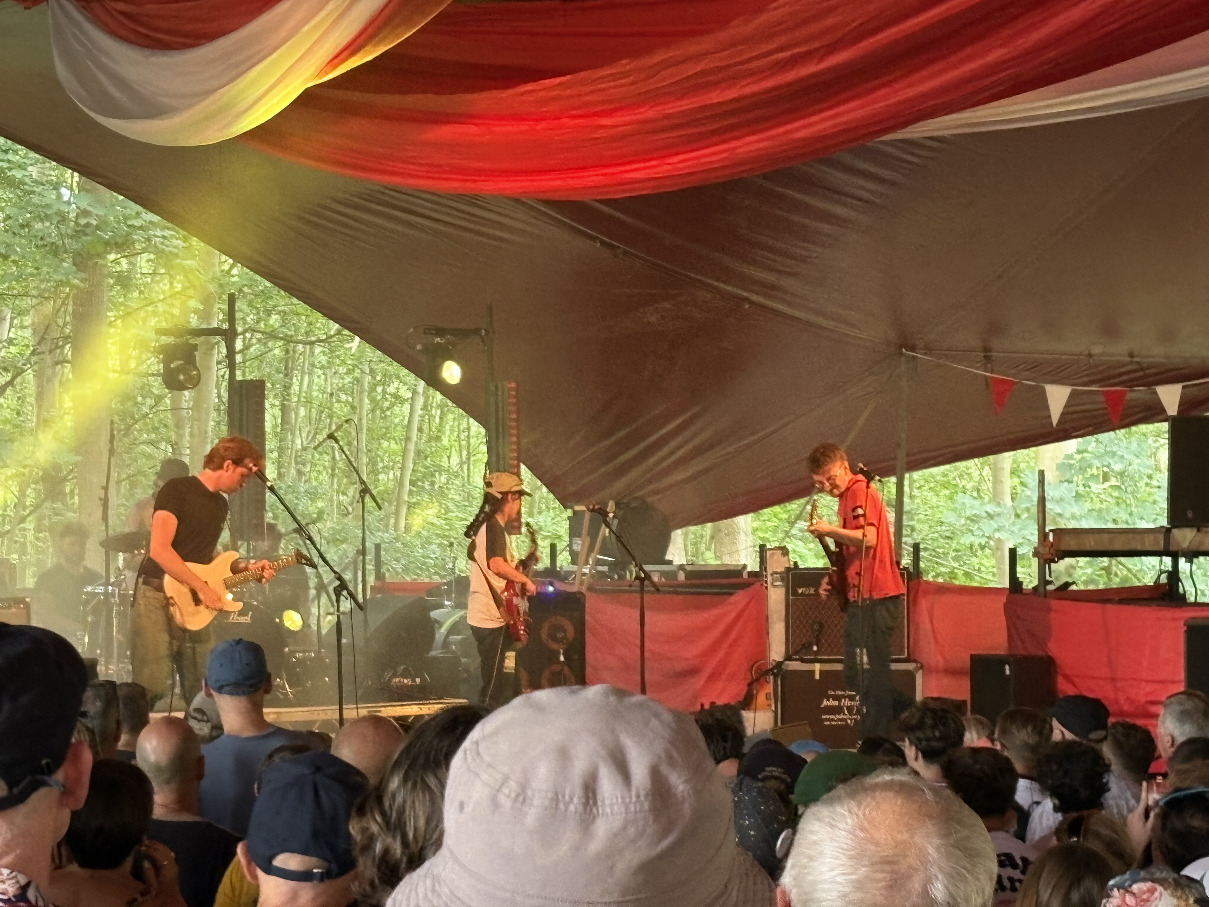 Afterwards we went down to the Sunrise and caught a couple of songs by Irish band the Cliffords. It didn’t really grab either of us, so were retired to the Taphouse for a beer before heading over to the Alcove tent – for up-and-coming bands mainly – for Mandrake Handshake. You knew what you were going to get from the name alone! And it was good. You’d call it psychedelic rock I guess, but there were some driving rhythms carrying it along and plenty of airy warbling and expressive dancing. Very much in the spirit of the late 60s/early 70s, but from more modern times King Gizzard and the Lizard Wizard would be a reference point. Very enjoyable.