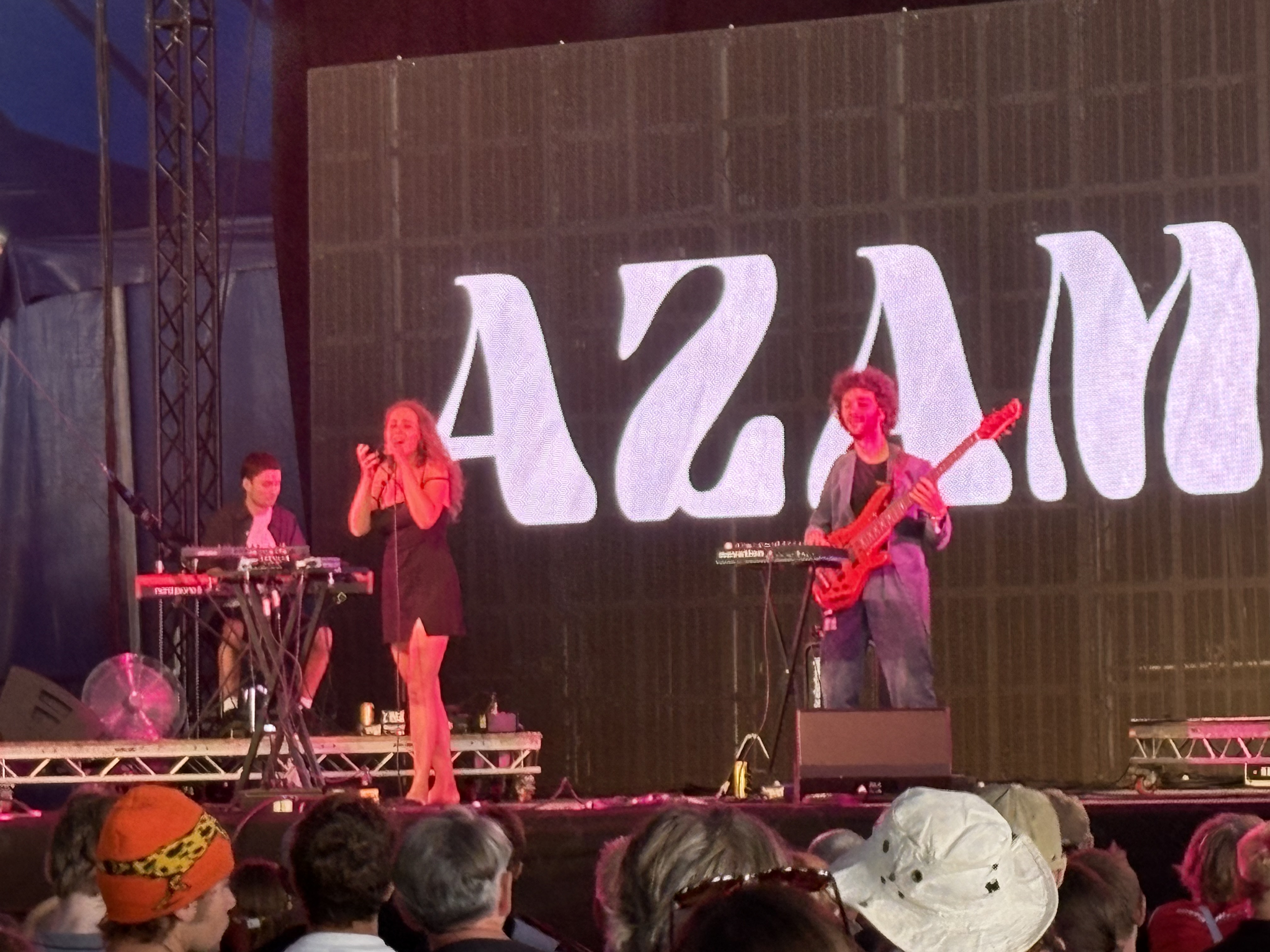 Next for Jon and me was Azamiah on the Second Stage – the main tent. From Glasgow, they were described as nu-jazz in the blurb. Generally that means they’re young and mix jazz with soul, funk, reggae and music from around the world. And indeed, Azamiah did just that – the world including the Scottish islands. Singer India Blue had a striking voice which lifted the music into an almost folky dimension at times. The rhythms were like a cool breeze with an occasional dubwise feel. I liked it!