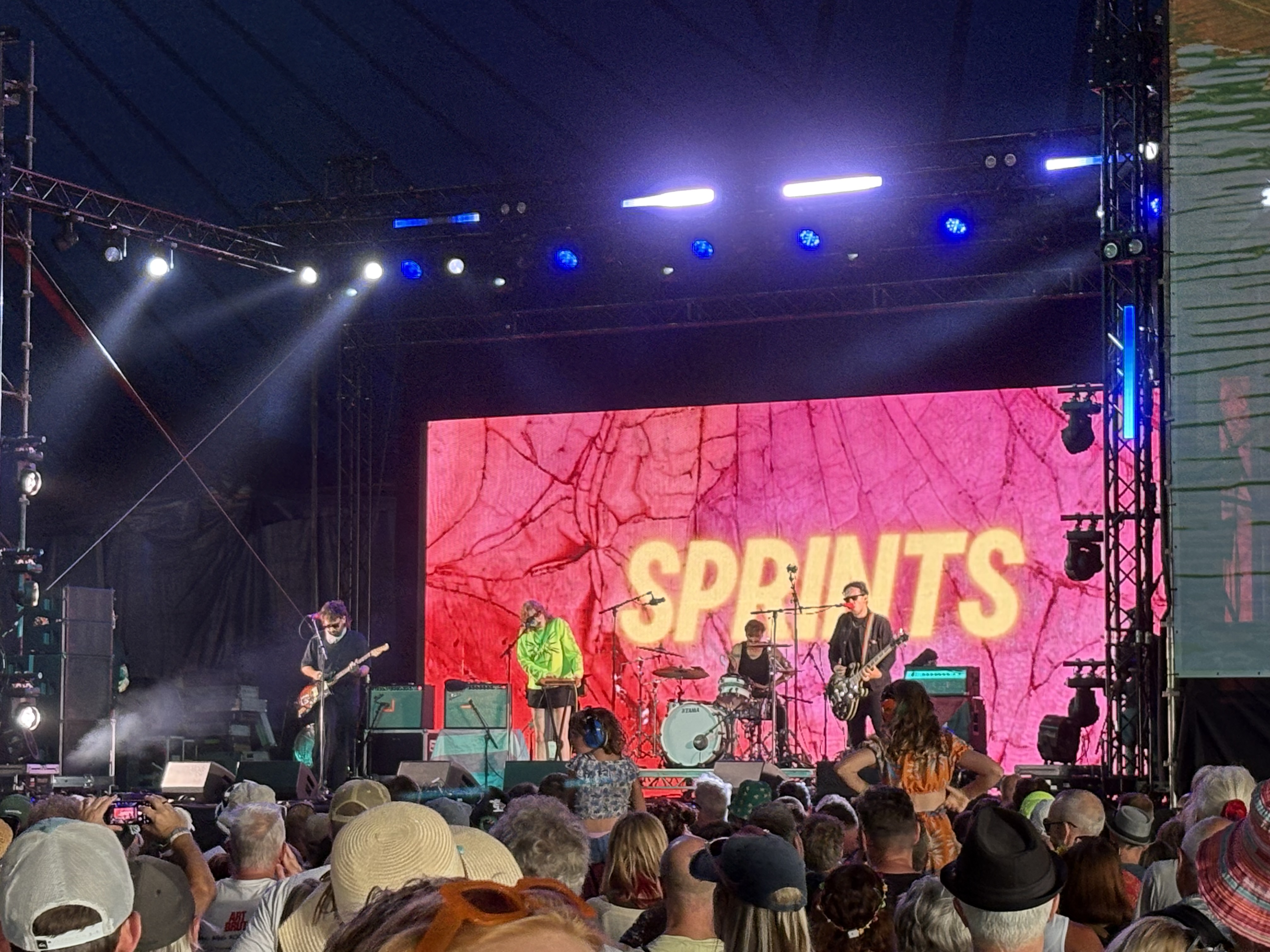 Back up to the Obelisk for Maribou State and some soulful electronica before going over to the Second Stage for one of Ireland’s bands of the moment, Sprints. To call them punk would over-simplify, but the spirit is there. They rock hard, with a wider palette of sound than straight punk. They were relentlessly energetic from start to finish, with singer Karla Chubb leading the way. A bit of crowd-surfing towards the end was inevitable! A triumph.