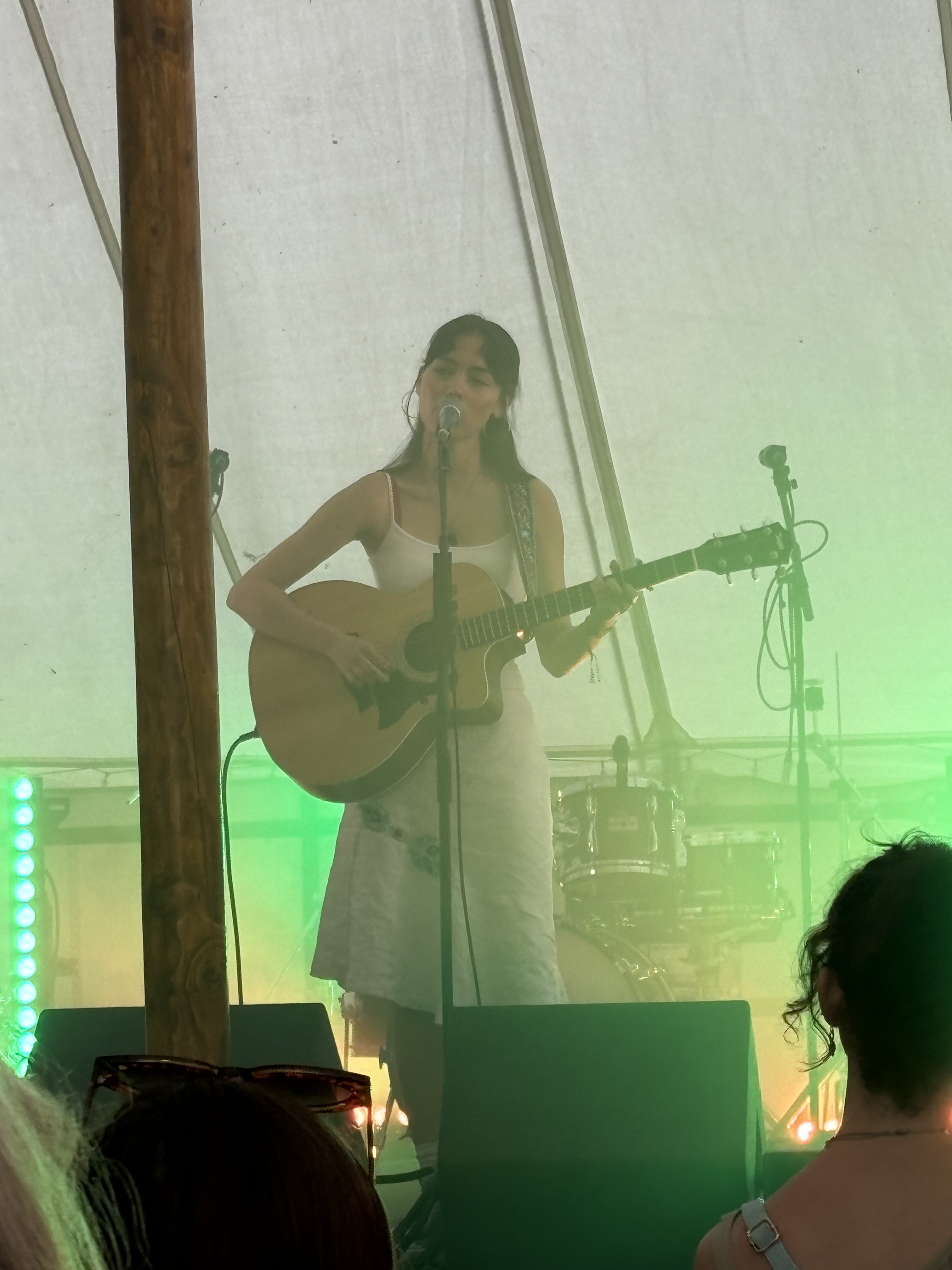 A mostly cloudy but dry day. I started the day’s music with two performances in the Alcove. First up was Nadia Kadek, a local singer-songwriter – Latitude is good at giving local artists a chance to show what they can do. Nadia is half-Indonesian but grew up in the nearby town of Diss. That experience informs some of her music, along with the usual trials and tribulations of friendship and love. I liked the tunes and she had a beautiful voice. An engaging personality too – the chance to play here was a dream fulfilled for her, having come to Latitude many times herself as a punter. She’s got a couple of songs on Spotify, the latest of which is Lemonade (not to be confused with the Beyonce album!). One to watch.