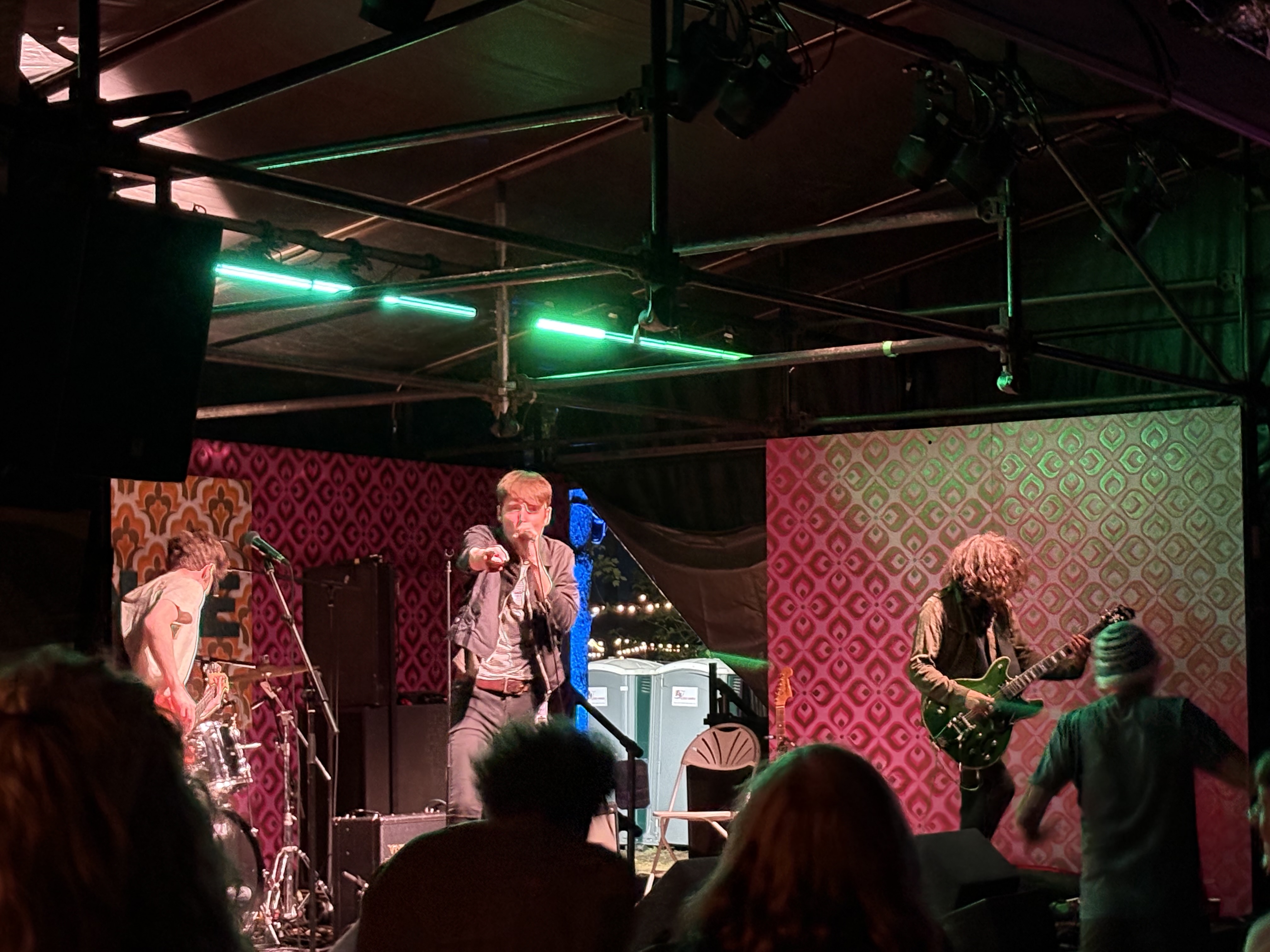 The Sunrise is always a great place to end the festival. Last year it was English Teacher, who were brilliant. But this was the Lambrini Girls, and they hadn’t changed. Singer Phoebe Lunny, after insulting Snow Patrol, was soon in the crowd, shouting about something or other while the bassist and drummer played a holding riff. That characterised much of the half hour we watched. Occasionally she got back on stage and they played some music – a bit tuneless and frantic with lots of shouting, but high energy. I do like some of their songs – there’s a kind of wit amid the anger. But I don’t think they do themselves any favours live – so much time is wasted. After half an hour I was getting angry and my head hurt. The final straw was an inane cry of shout if you hate the police. This to a crowd of mostly white middle class people who have probably had little contact with the police, unless they have relatives in the force. I tapped Jon on the shoulder and we agreed it was enough.