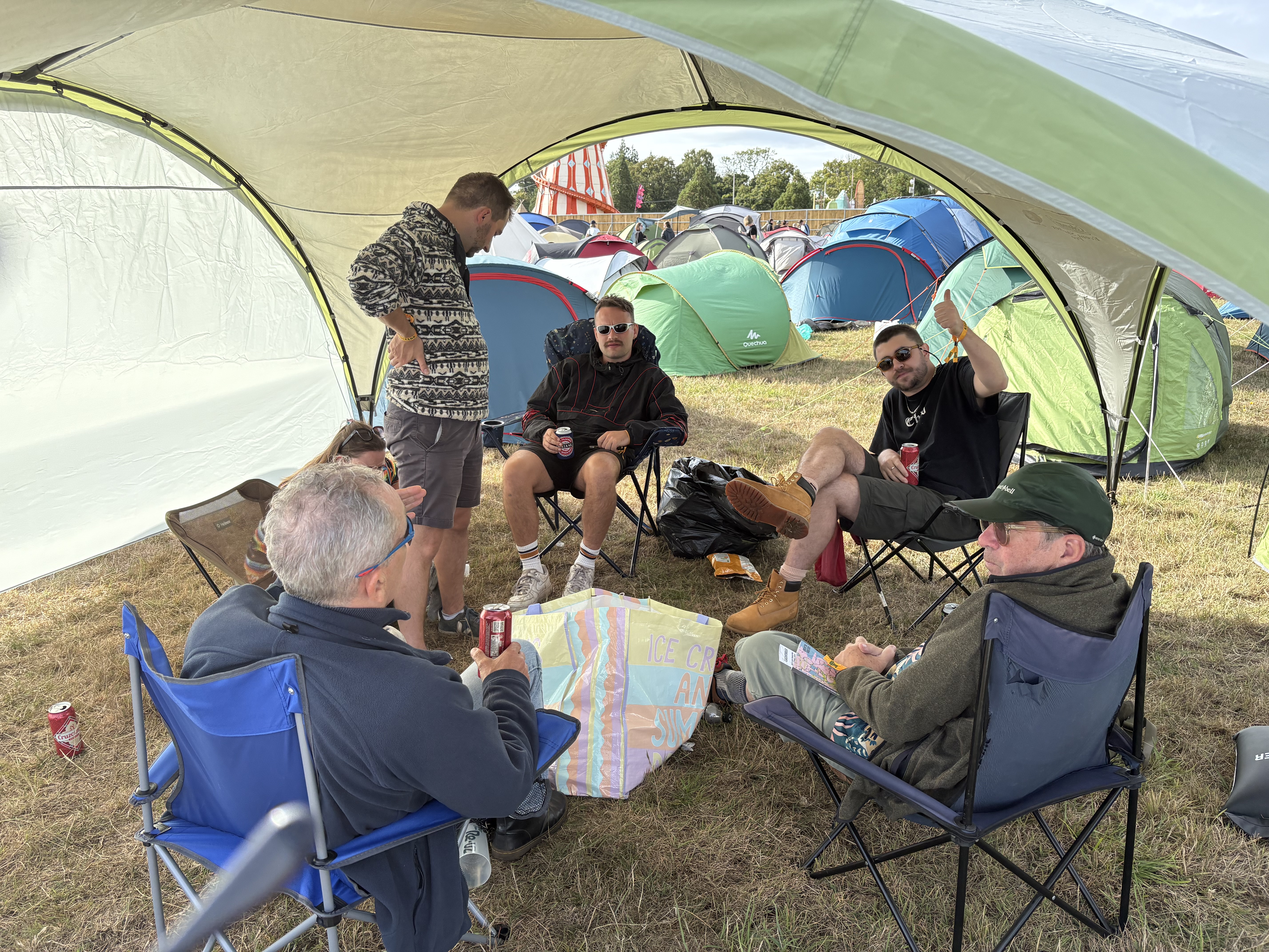 There were lots of us this year. Jon, Shane and I made the journey in Jon’s car. On arrival Jon and I headed for the Tangerine Fields glamping and despatched Shane to the main campsite to pitch his tent with the youngsters: Louis, Connie, Callum, Tom, Fionn and others. It’s good to have their company: passionate about the music and bringing a different perspective. You get to see bands you might otherwise not have considered.