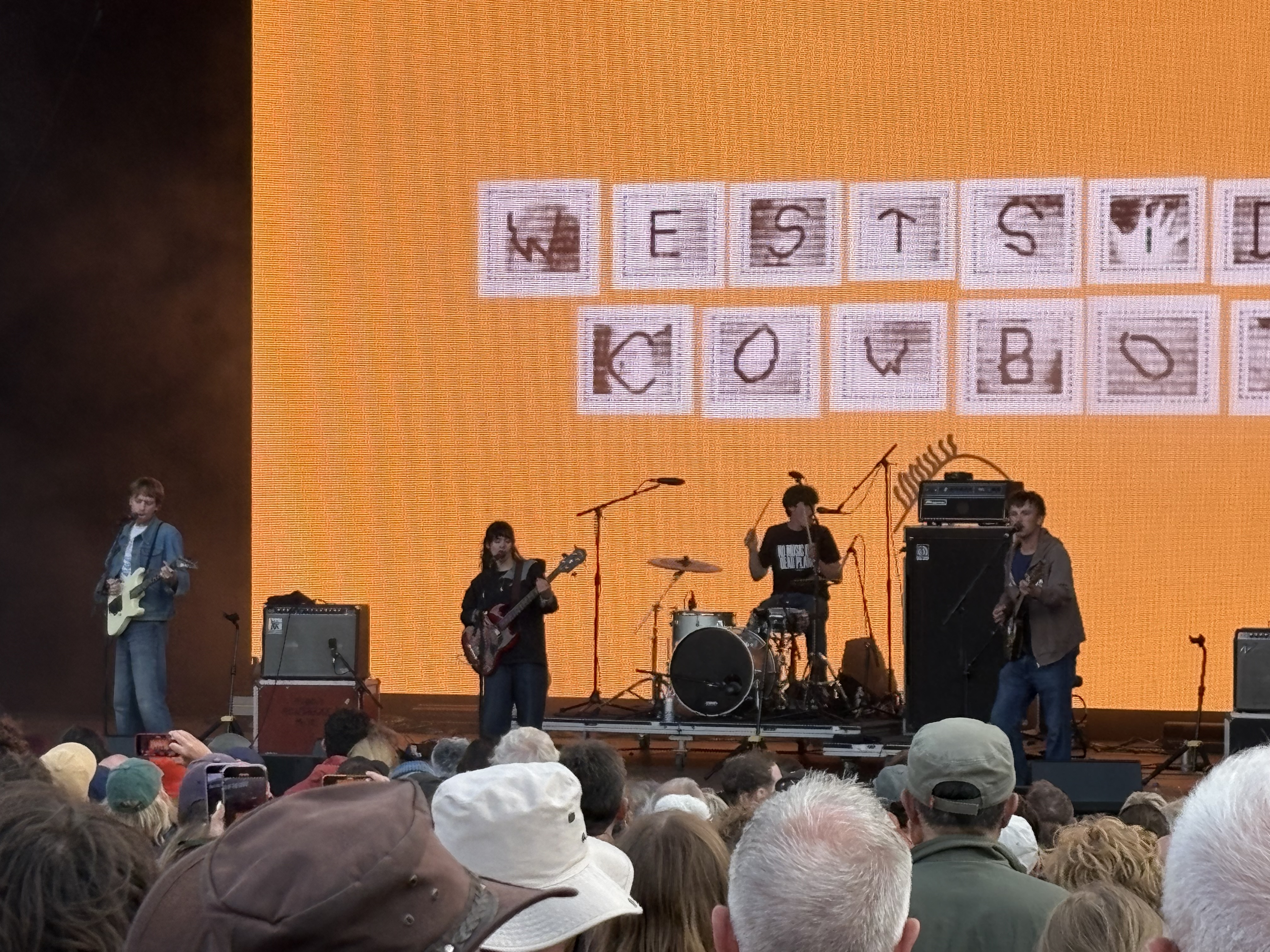 We started in the Folly tent with La Securité, a Montreal art punk band that reminded me a little of 80s post punk bands like Altered Images and A Certain Ratio musically. Sharp, jumpy rhythms and an engaging singer. We didn’t hang around for the whole set as we wanted to get over to the Woods stage for Westside Cowboy. We’d seen them play a great set on the Sunrise Arena at Latitude – I wondered how they’d translate to the bigger spaces of the main stage. The answer was, brilliantly. Their combination of Americana and grunge, with deft harmonies, went down really well with a good sized crowd, while their presence was enhanced by an orange backdrop against which they stood out. It certainly added to my appreciation of the drummer, who drove the music along. Louis and Tom knew all the words to their recent singles, which is a good sign. A band destined to join the list of Manchester’s finest.