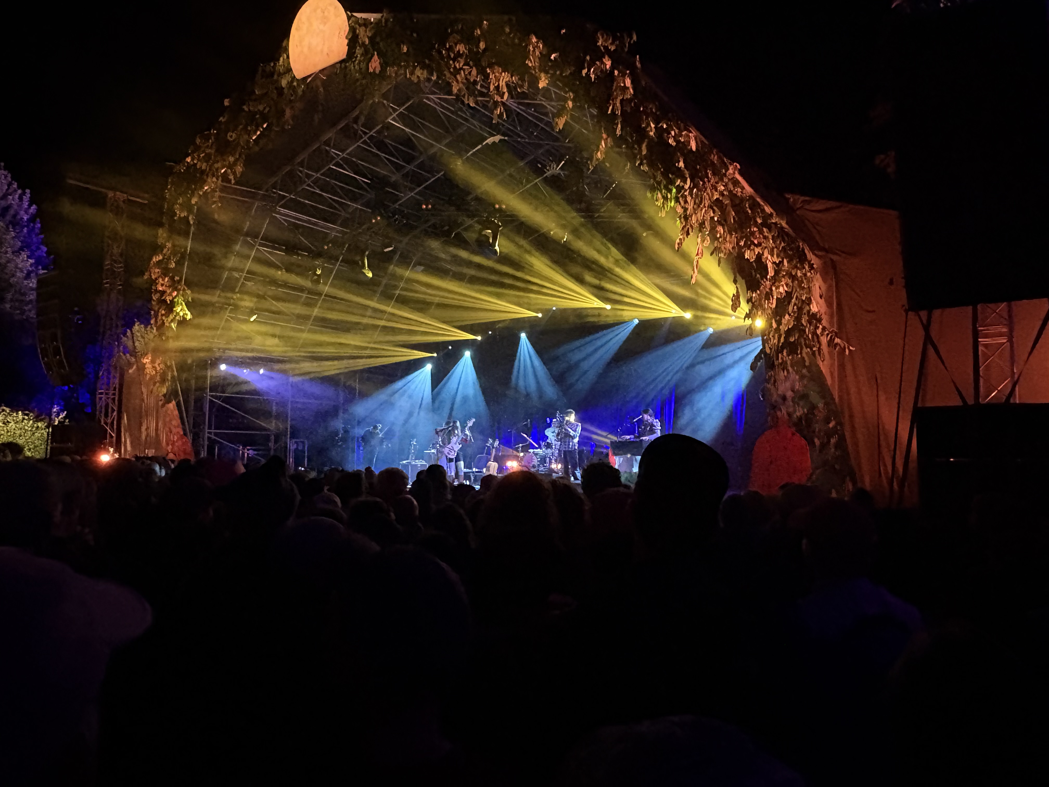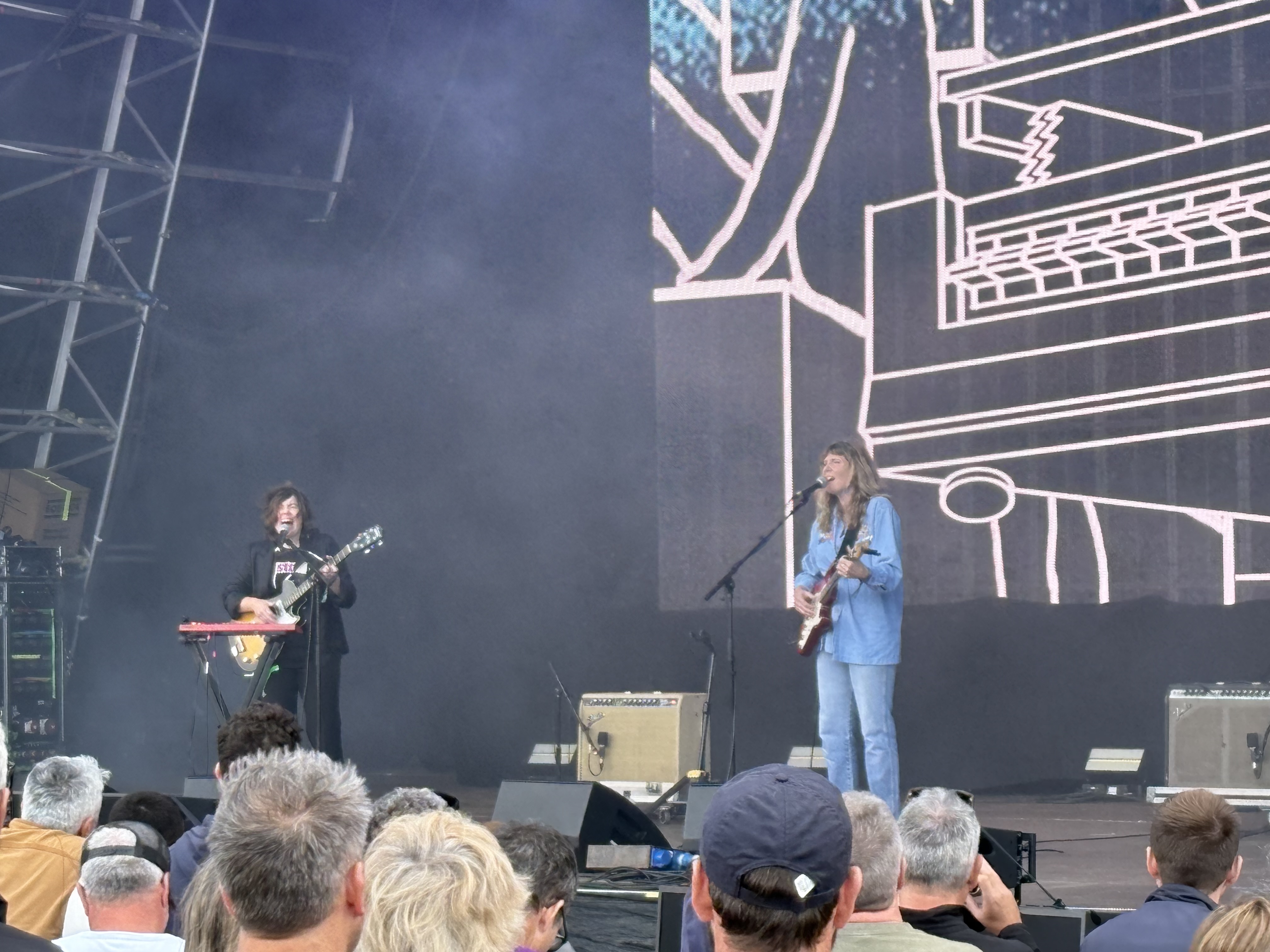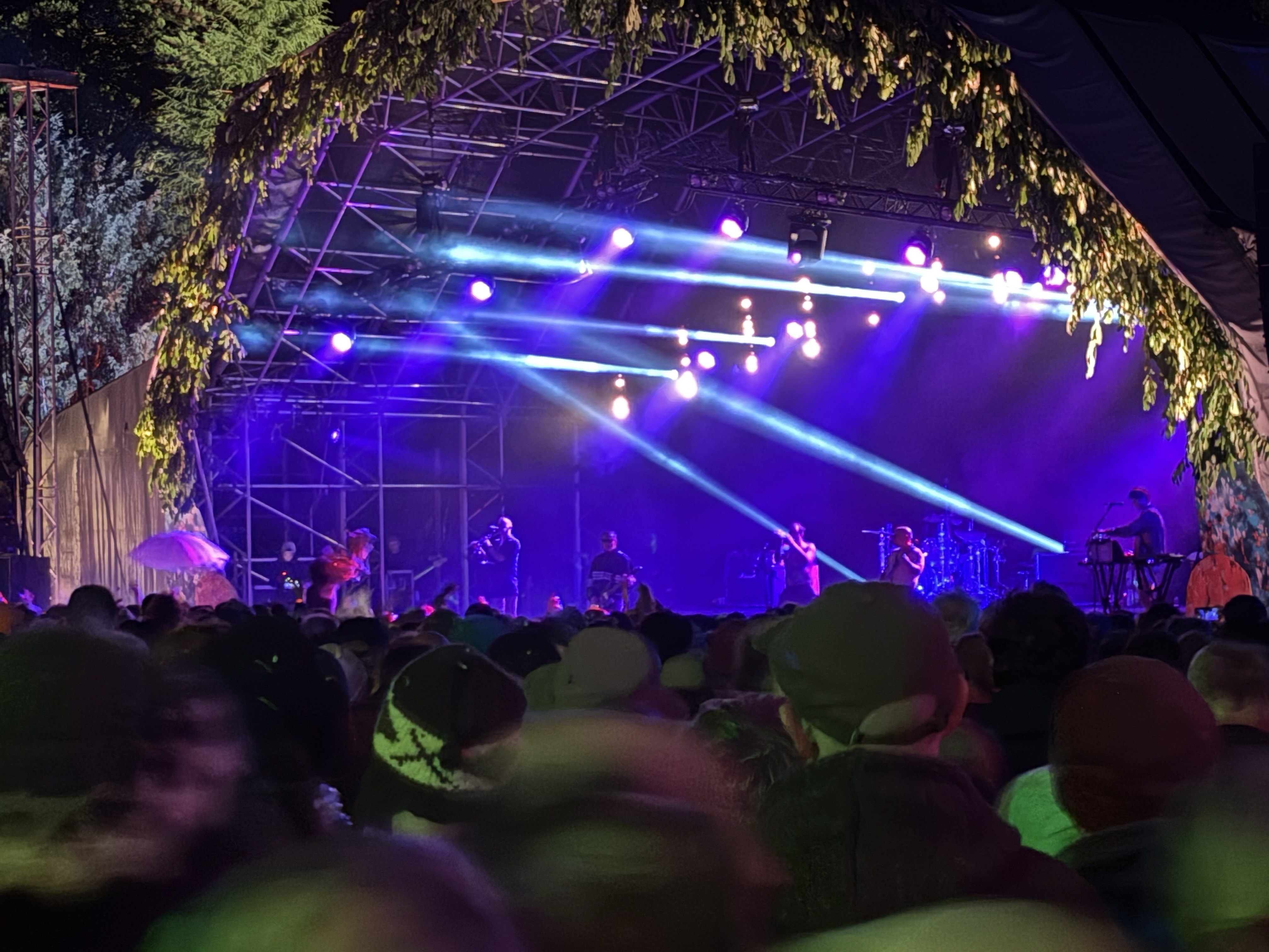 We stayed on at the Folly for Anna Erhard, but the music didn’t grab us, so we wandered over to the Woods stage bar and got ready for Thursday’s headliner Sharon van Etten and the Attachment Theory. Long-time readers of this blog will know that I’ve loved Sharon van Etten’s music, especially the songs on albums like Tramp (2012) and Are We There (2014). Even with a band, she had a raw, stripped-back sound then. Over time her music has become more elaborate, fuller. I still liked her albums, with Remind Me Tomorrow (2019) featuring the anthem Seventeen, now the highlight of her live show. But this year’s eponymous album with the Attachment Theory was just too slick and bombastic on first listen, and I haven’t gone back to it. And the live show at EOTR? Rather the same, I’m afraid. I couldn’t really engage with it. It probably didn’t help that we were standing quite far back and EOTR has resolutely resisted having any screens, even on the main stage. Checking Setlist FM, I saw that half the set was from the new album, but the other half was tracks I should have recognised. But the only two that stood out were Only When the Sun Comes Up and Seventeen. And even they seemed a bit perfunctory. I’m probably being unfair – I imagine there were a lot of people who loved it. But it was one of those shows where half an hour in you think, oh God, I’ve got another hour of this.