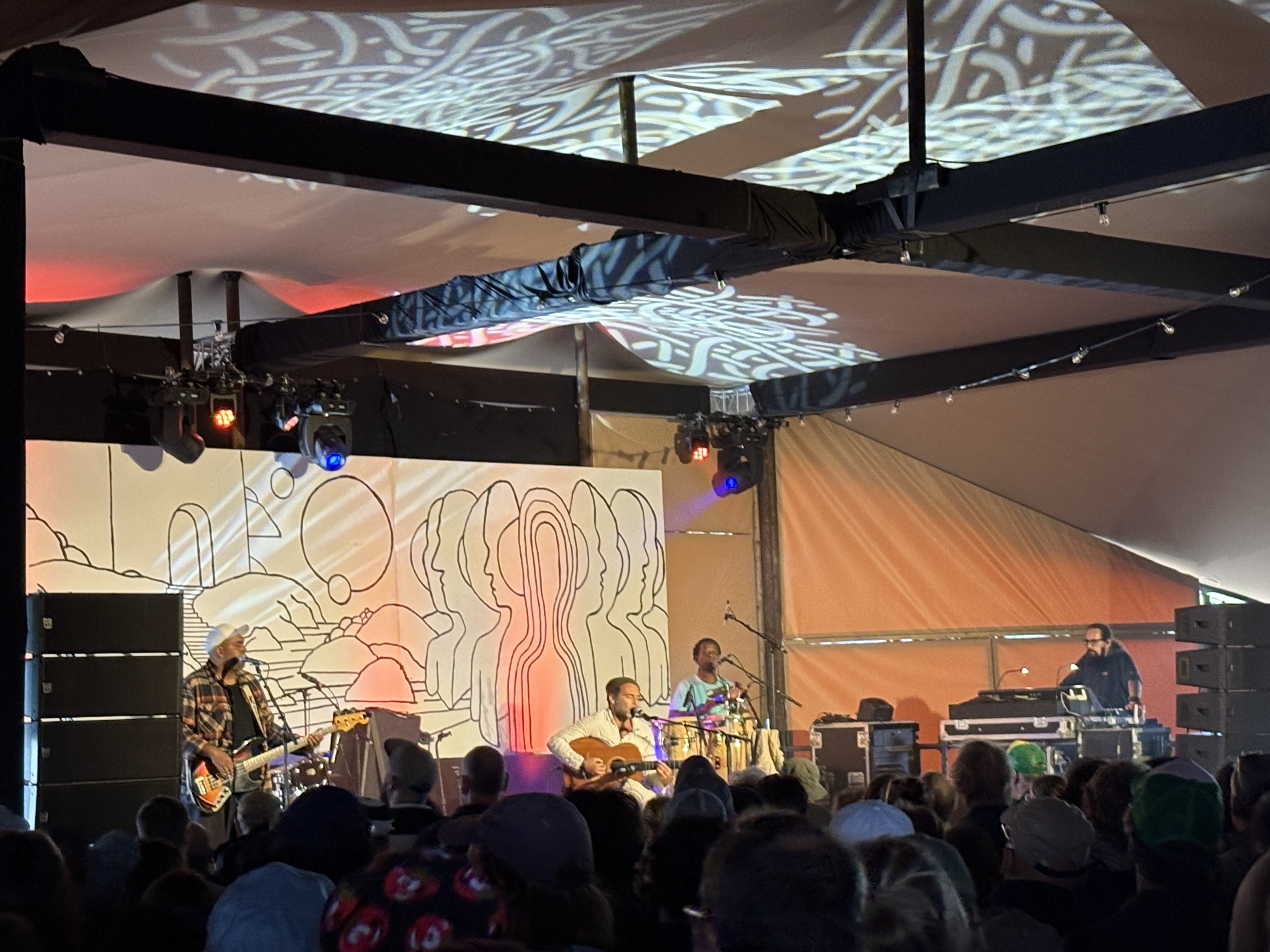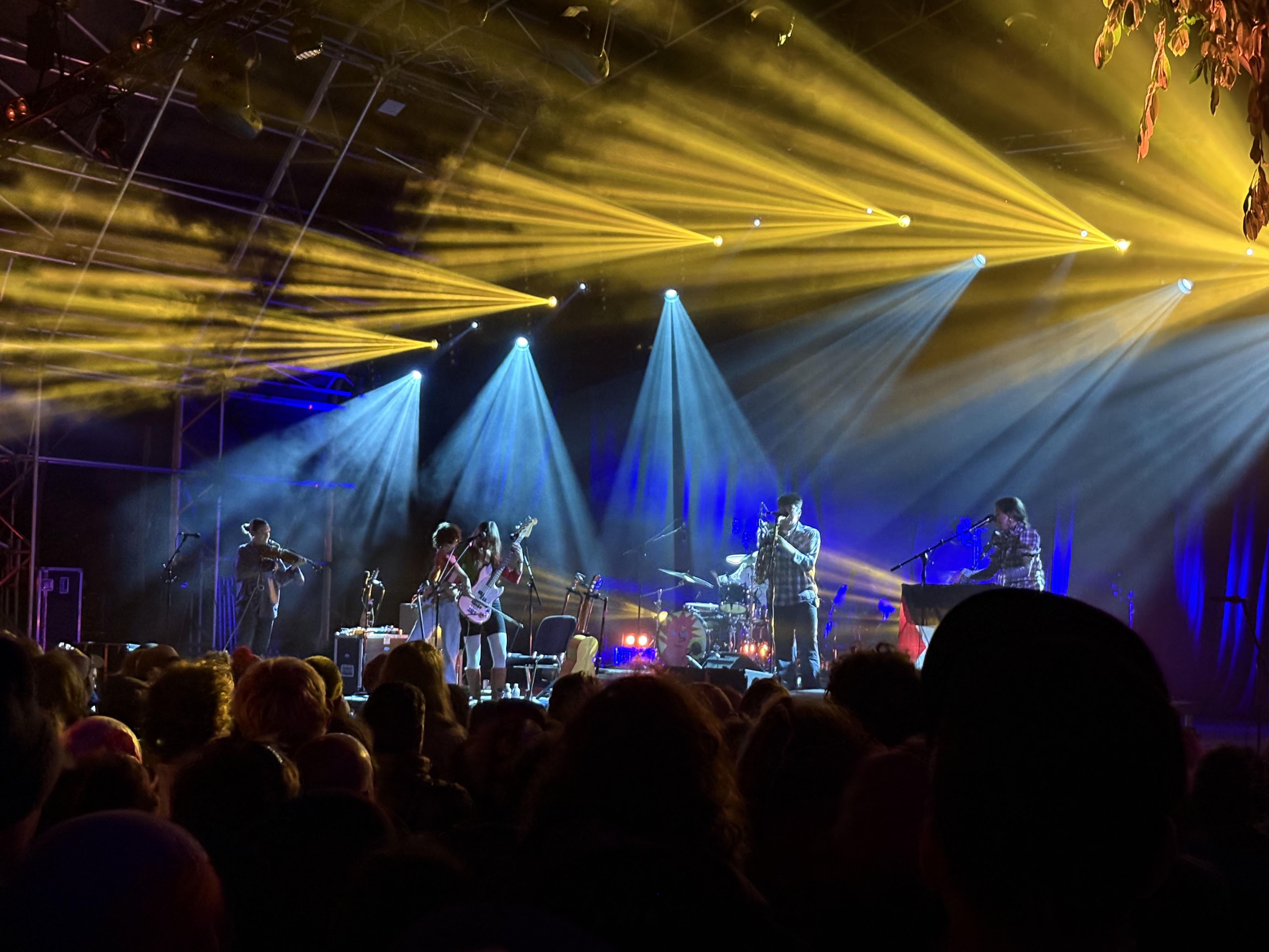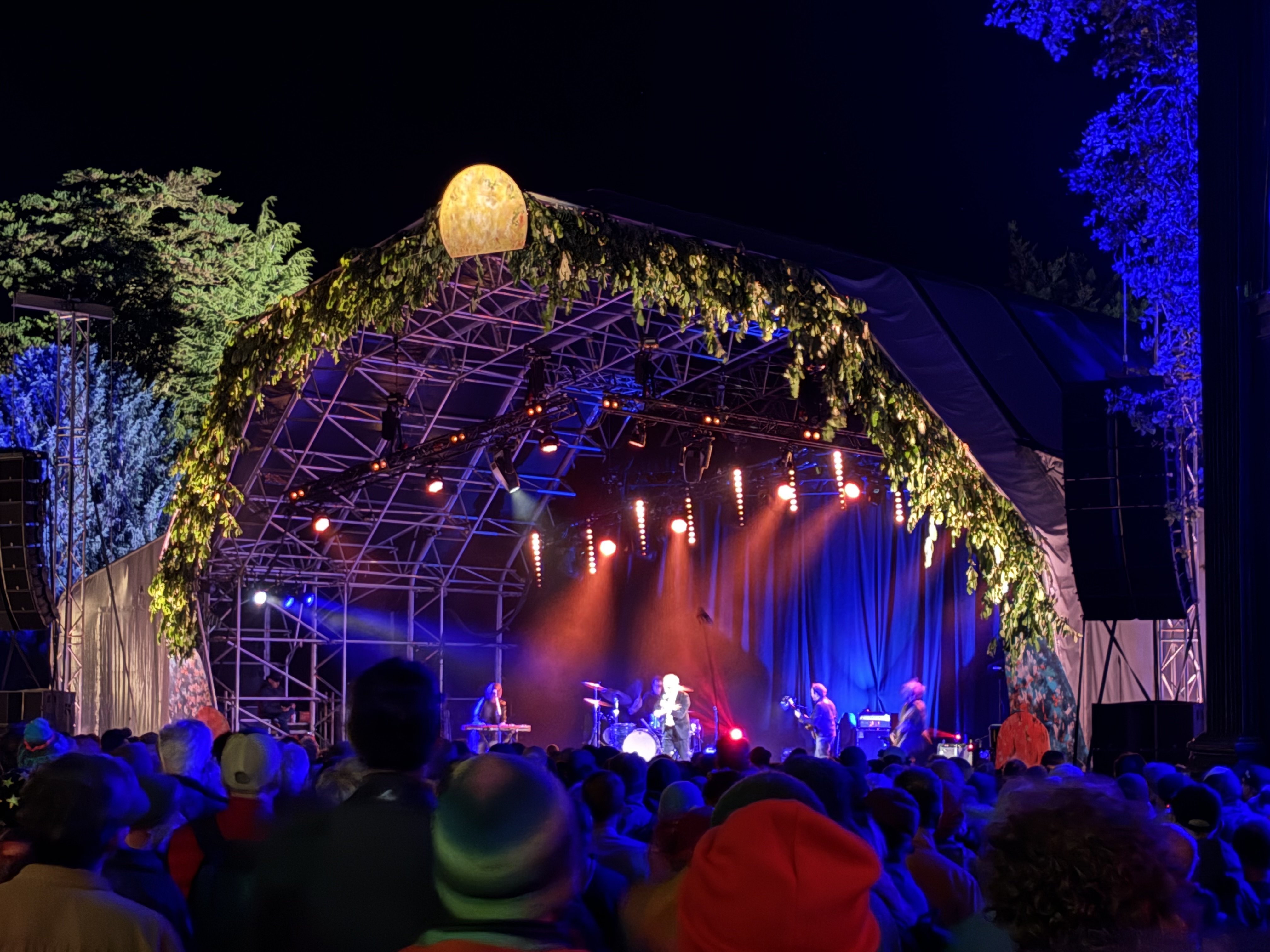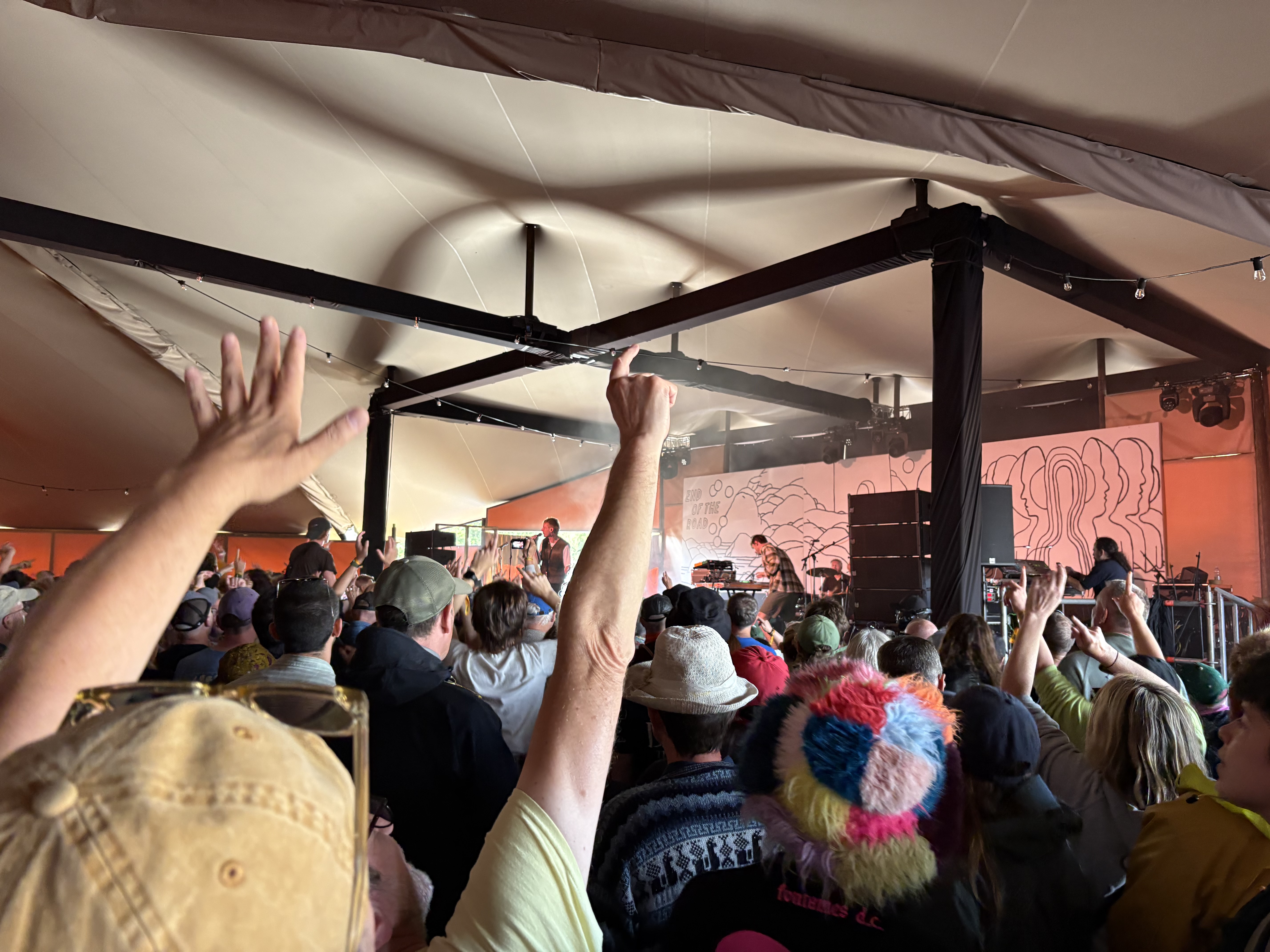 We stayed on at the Folly for Anna Erhard, but the music didn’t grab us, so we wandered over to the Woods stage bar and got ready for Thursday’s headliner Sharon van Etten and the Attachment Theory. Long-time readers of this blog will know that I’ve loved Sharon van Etten’s music, especially the songs on albums like Tramp (2012) and Are We There (2014). Even with a band, she had a raw, stripped-back sound then. Over time her music has become more elaborate, fuller. I still liked her albums, with Remind Me Tomorrow (2019) featuring the anthem Seventeen, now the highlight of her live show. But this year’s eponymous album with the Attachment Theory was just too slick and bombastic on first listen, and I haven’t gone back to it. And the live show at EOTR? Rather the same, I’m afraid. I couldn’t really engage with it. It probably didn’t help that we were standing quite far back and EOTR has resolutely resisted having any screens, even on the main stage. Checking Setlist FM, I saw that half the set was from the new album, but the other half was tracks I should have recognised. But the only two that stood out were Only When the Sun Comes Up and Seventeen. And even they seemed a bit perfunctory. I’m probably being unfair – I imagine there were a lot of people who loved it. But it was one of those shows where half an hour in you think, oh God, I’ve got another hour of this.
