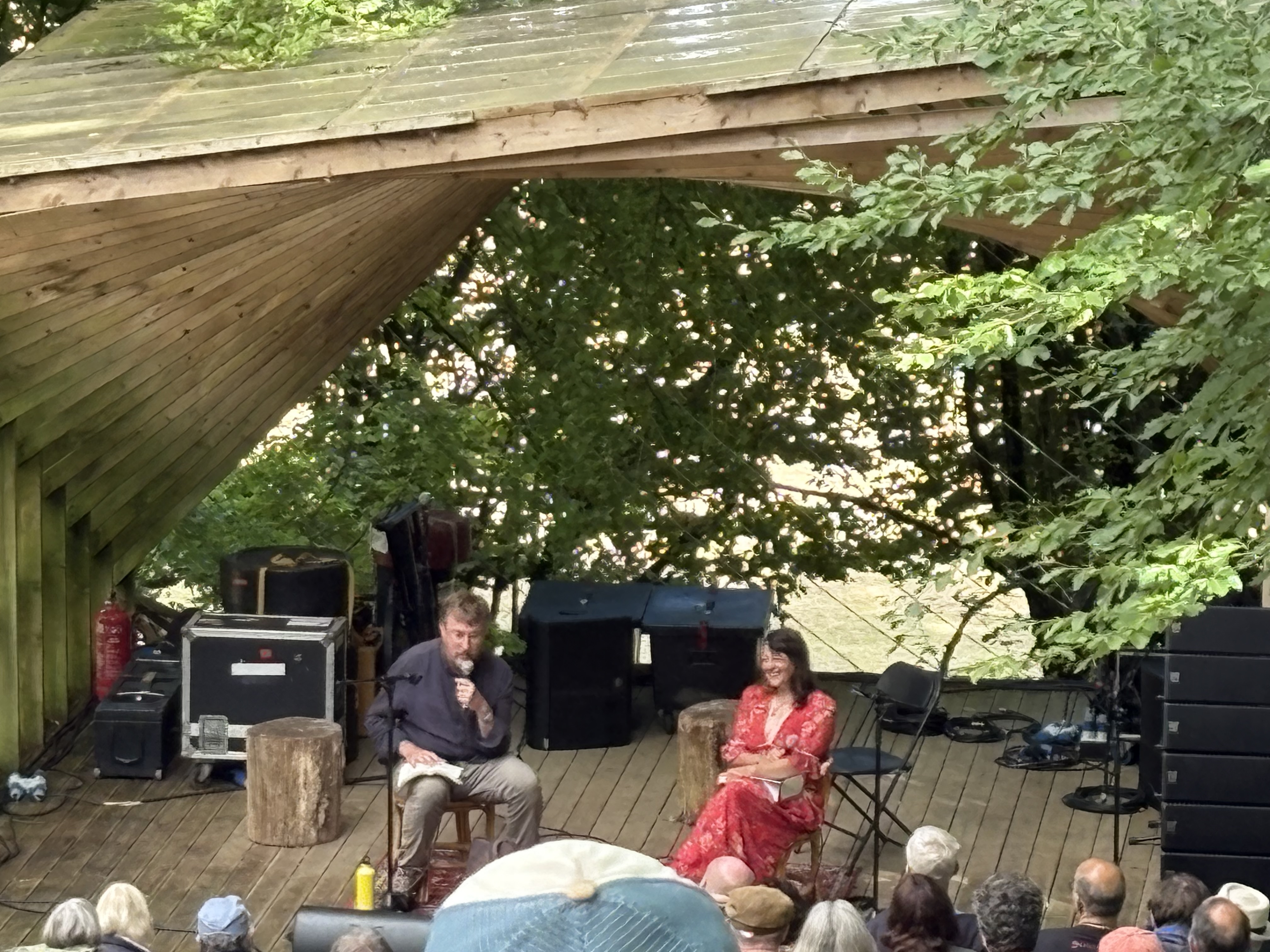 The day began for me with the only literature event that I went to this year. Jon had gone earlier and saw a bit more; I hung around the tent and had a bacon bap from the Tangerine Fields café. It was good!  The talk was with John Harris, the Guardian political journalist, one time music journalist. A trenchant observer of today’s society and the state’s inability to deal with its ills. He has written a book called Maybe I’m Amazed, which is the story of how important music has been in the life of him and his autistic son James. He spoke with great passion and humour about the transformative effect of music – and about the obstacles that government puts in place to get proper support for children with autism. And others with special needs. Moving and inspiring. Very sympathetically interviewed by another author, Holly Dawson. I bought a signed copy of the book later.