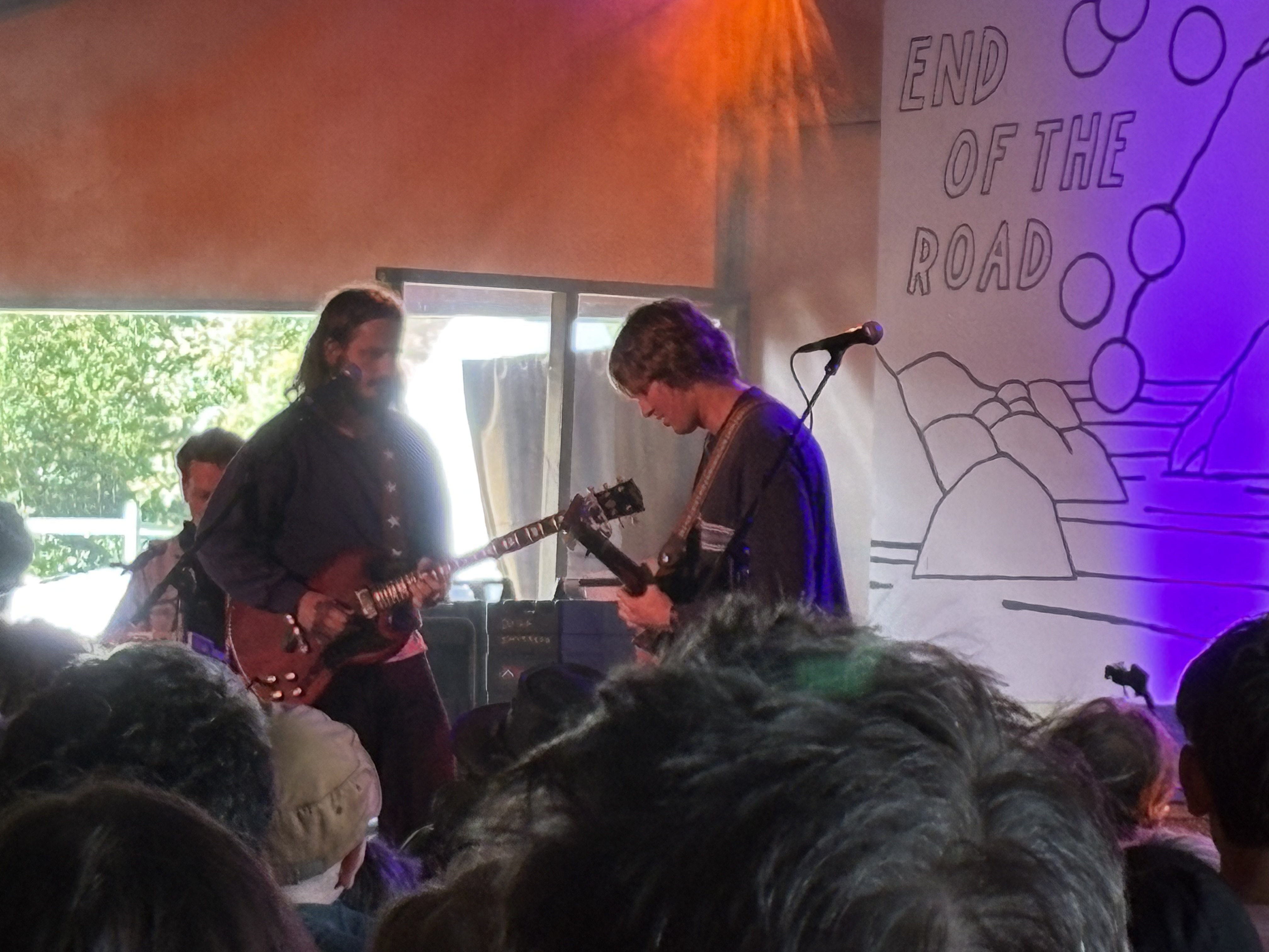Buoyed by Jake Xerxes Fussell, we went back to the Woods Stage for Ryan Davis and the Roundhouse Band. With a name like that it could only be Americana. The band came recommended by Simon Taffe, founder, director and curator of EOTR in that Line of Best Fit article. We had to give it a go. Thought it might be for 10-15 minutes until Slow Fiction started in the Folly, but it was so good we stayed for the whole show. Rumbling American epics, which you’ve heard before, but rarely done this well. Ryan Davis wasn’t just a good singer (and guitarist) but brought a bit of story-telling to the songs, which started to remind me of early Bruce Springsteen. Inevitably I heard a bit of War on Drugs too, though a closer resemblance musically would be to the Aussie band Rolling Blackouts Coastal Fever. Americana at its best – thanks for that one Simon!