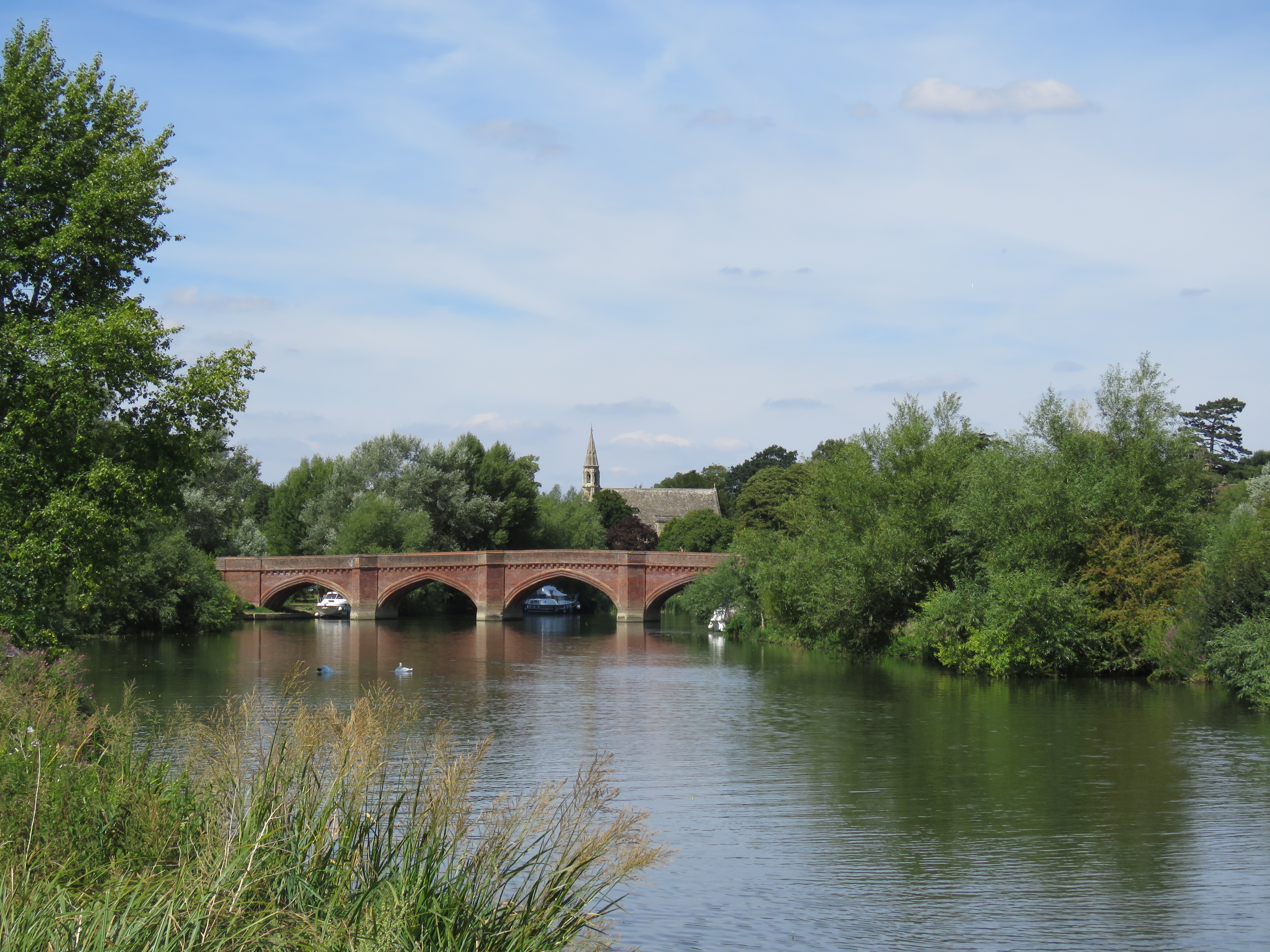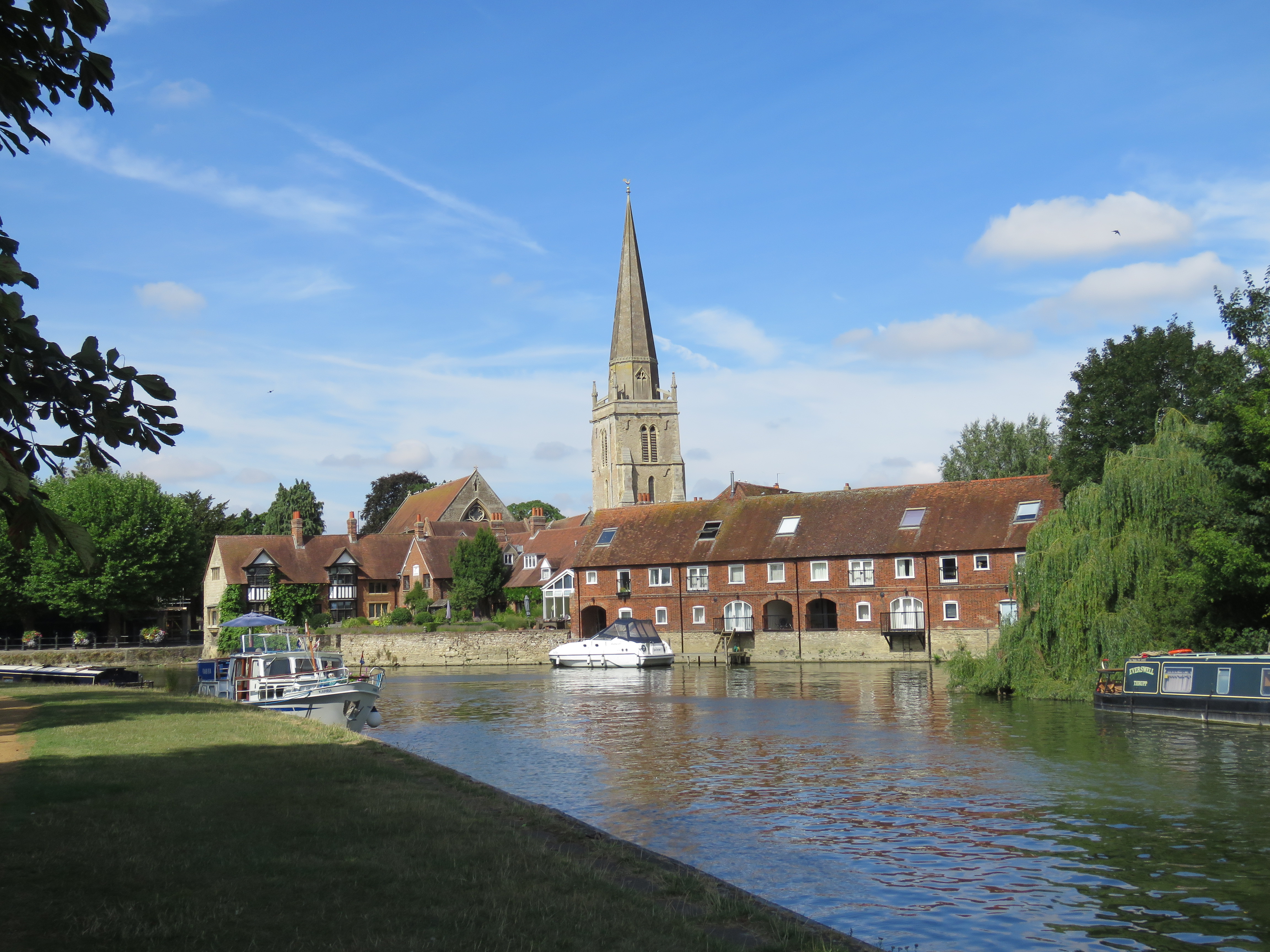 I wrote about the bridge at Marlow in part five of the journey, but not All Saints Church, which nestles by the river. From the towpath side you get a good view of the church. The current building is a Victorian construction, completed in 1835. The old church dated from the 11th century, but it was undermined by centuries of flooding. The spire collapsed in 1831!